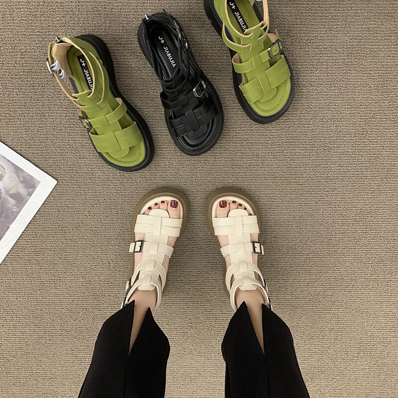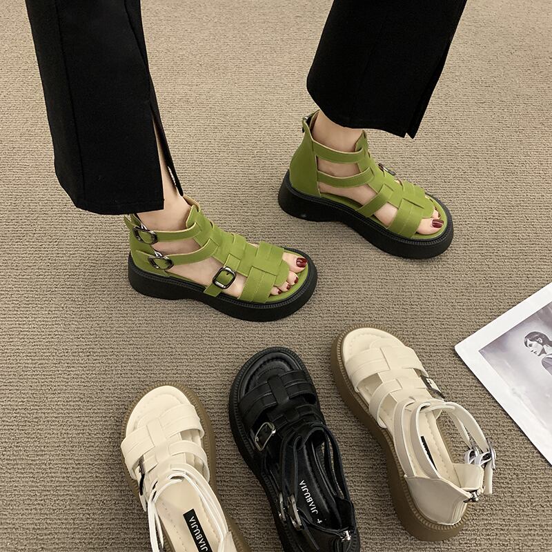 ローマのサンダル女性の2022年夏の新しいファッションカジュアルフレンチレトロ織り厚底ビーチシューズinstide 靴 サマー 夏物 jxjxf91282451531