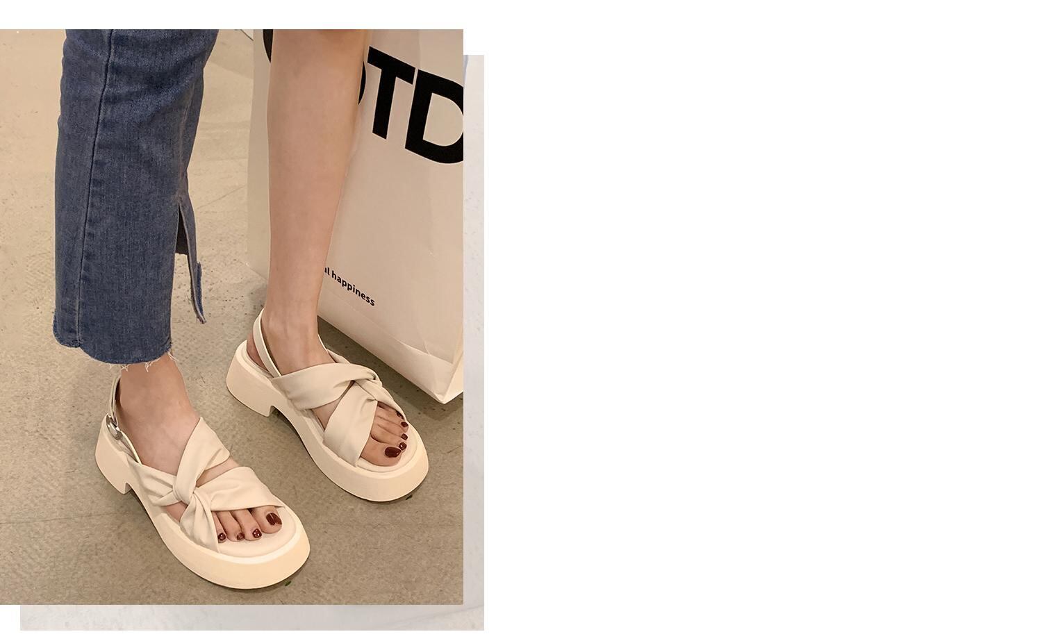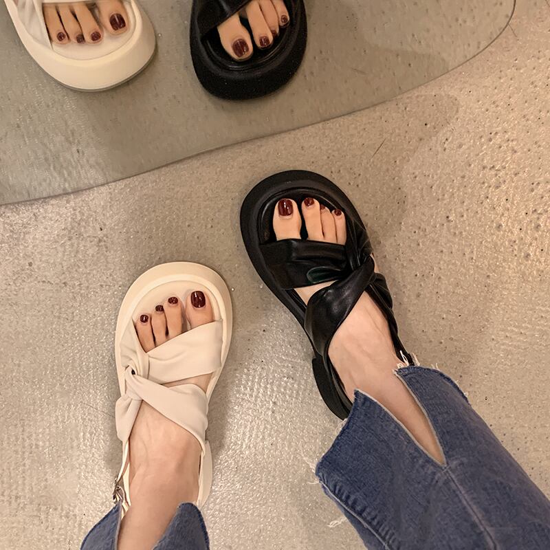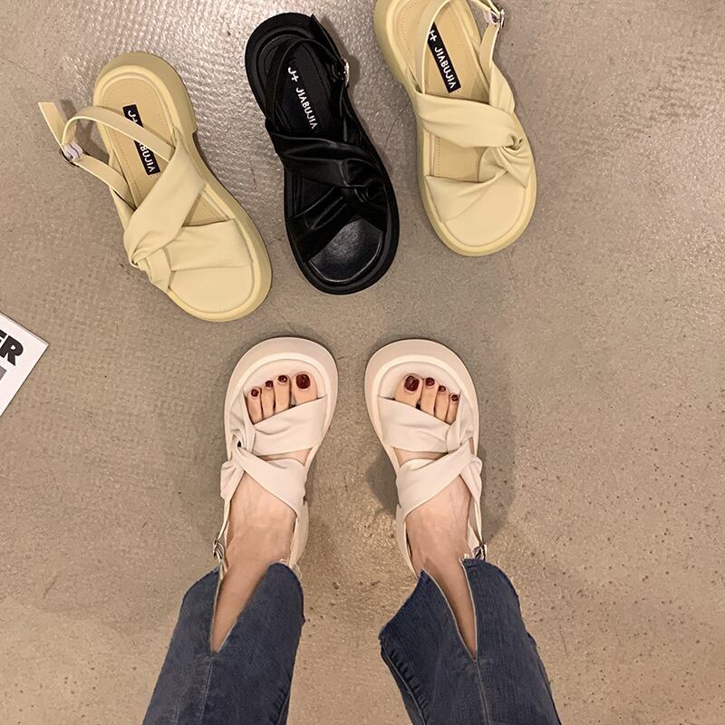 レディースサンダル2022年夏新しいファッションオールマッチレトロシンプルクロスシックヒール滑り止めカジュアルビーチシューズ 靴 サマー 夏物 jxjxf54841081995