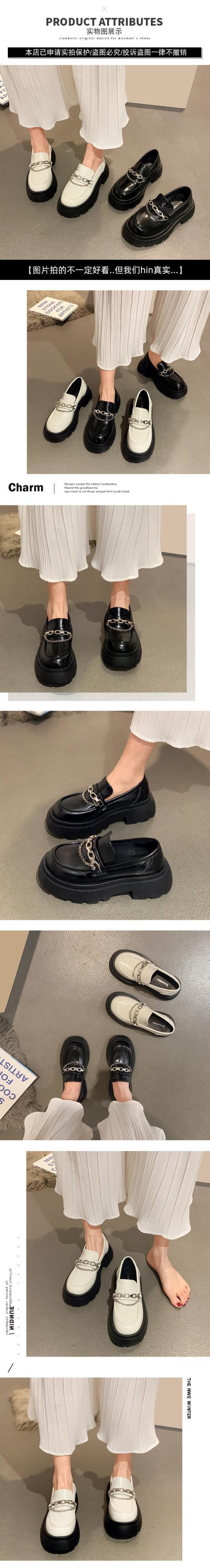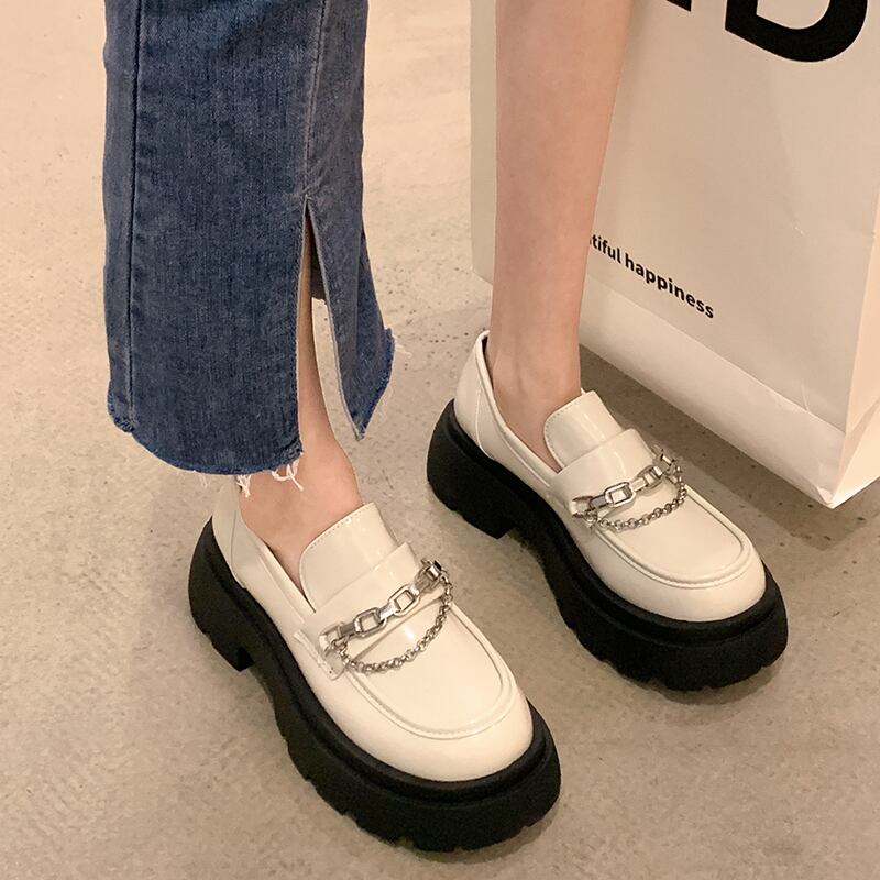 レトロなシングルシューズの女性の2022年夏の新しいファッションオールマッチメタルチェーンラウンドヘッド厚いヒール滑り止めの小さな革の靴の潮 サマー 夏物 レザー jxjxf23104499469