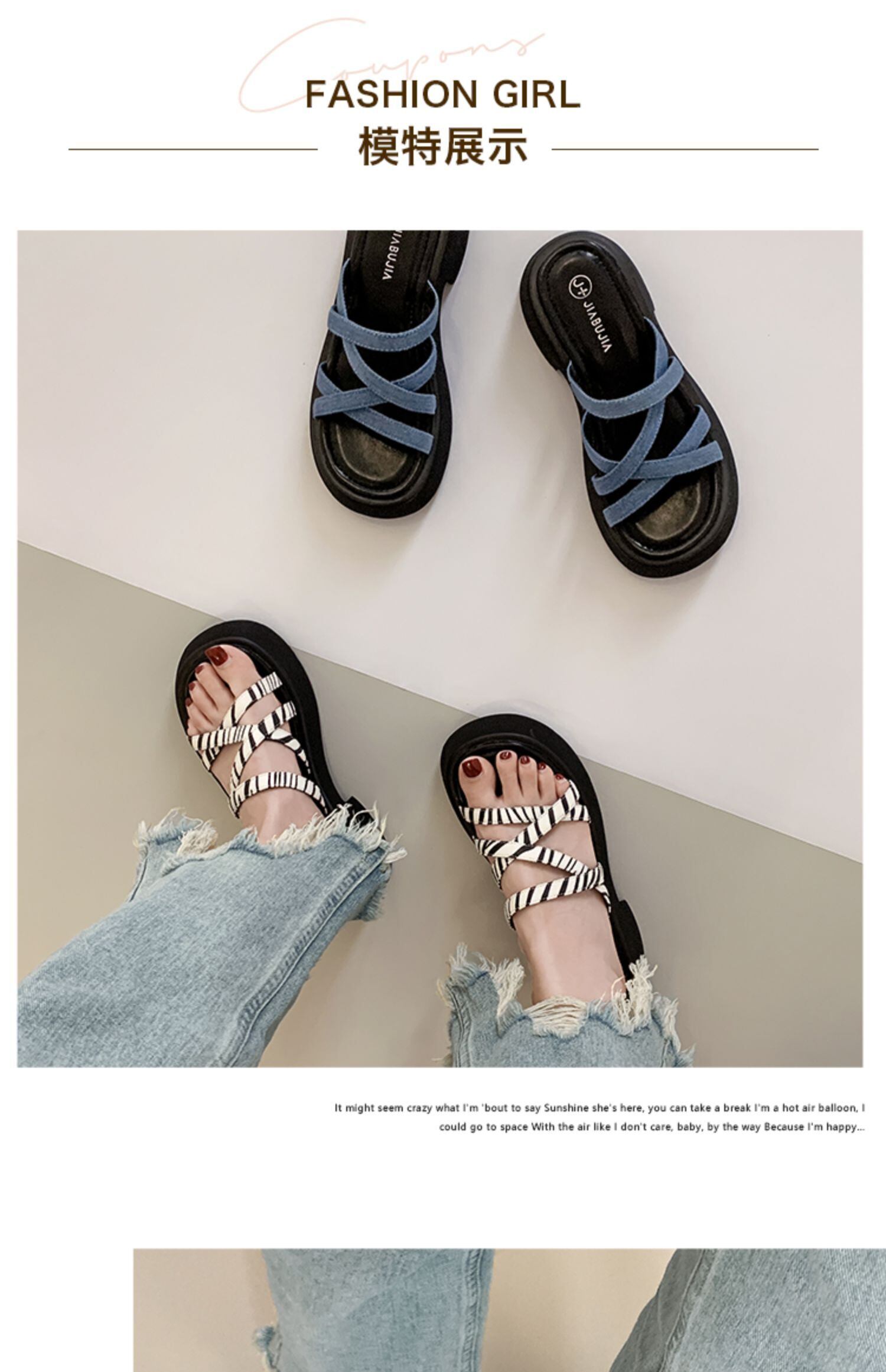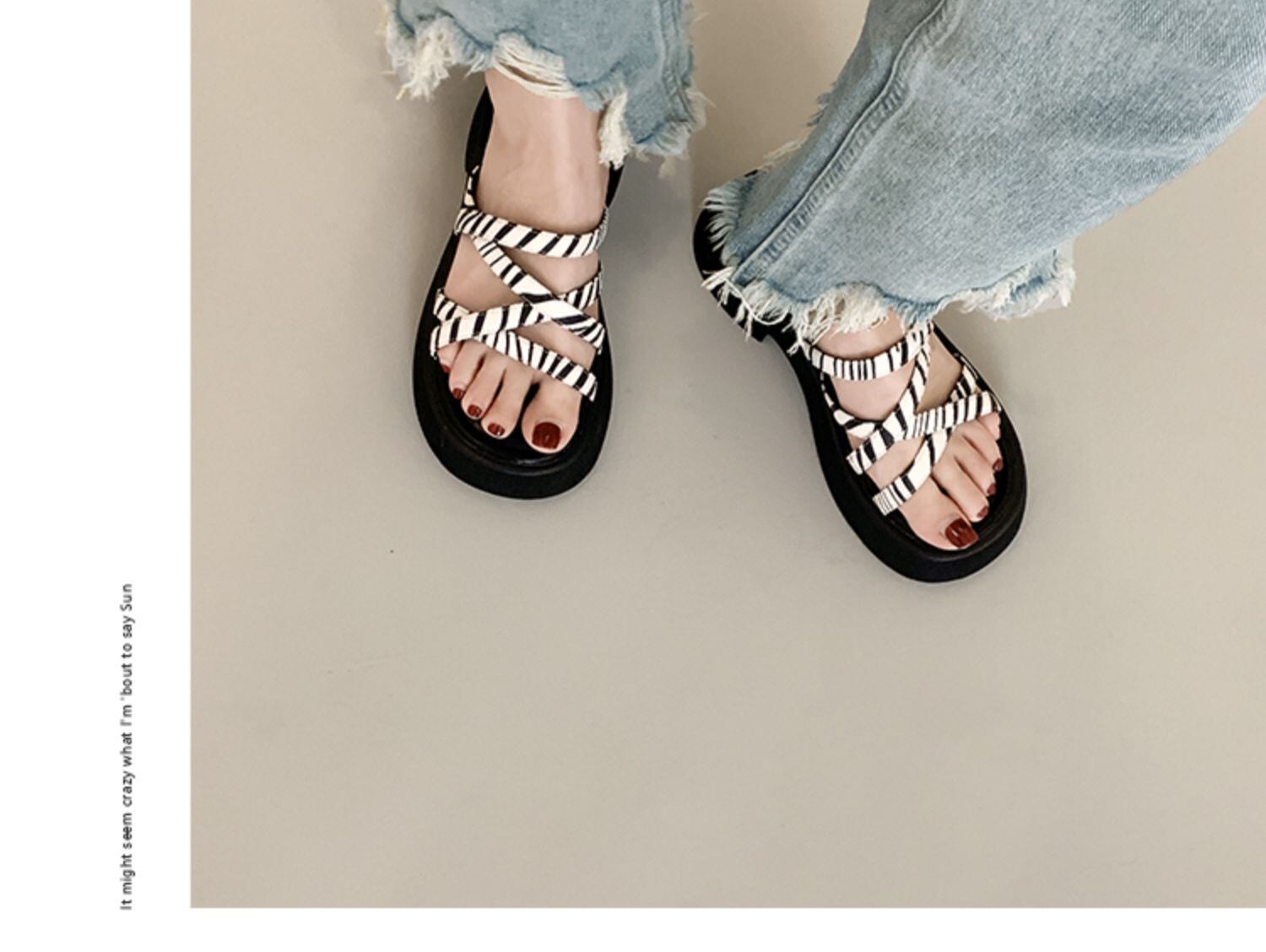 アウターウェアスリッパ女性の2022年夏の新しいファッションオールマッチゼブラパターンクロスワード厚手のヒール滑り止めサンダルとスリッパの潮 ミュール 靴 シューズ サマー 夏物 jxjxf96494116795