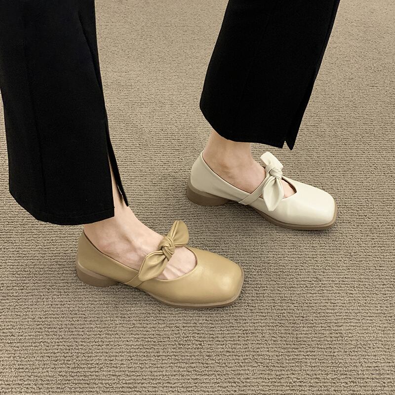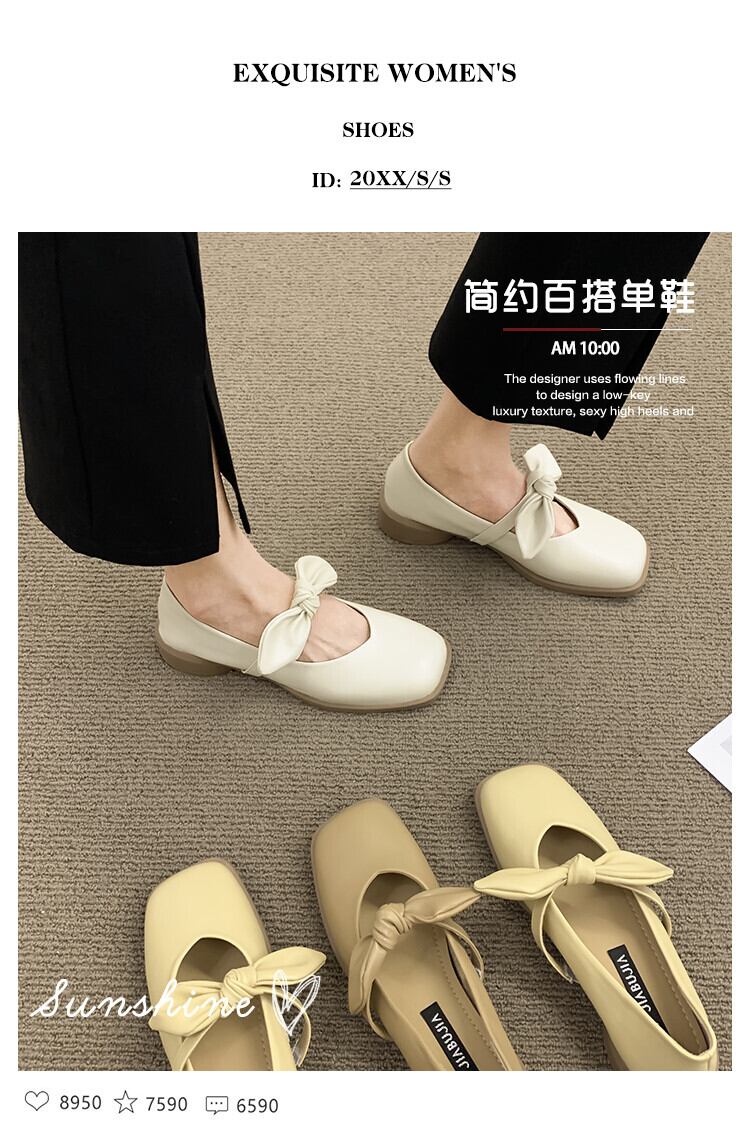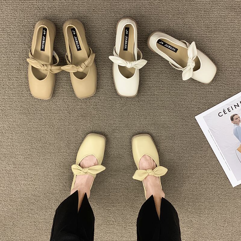 浅い口シングルシューズ2022年夏の女性の新しいフランスの優しい気質スクープシューズソフトボトムスクエアヘッドボウビーニーシューズ 靴 リボン サマー 夏物 スクウェア jxjxf17123001184