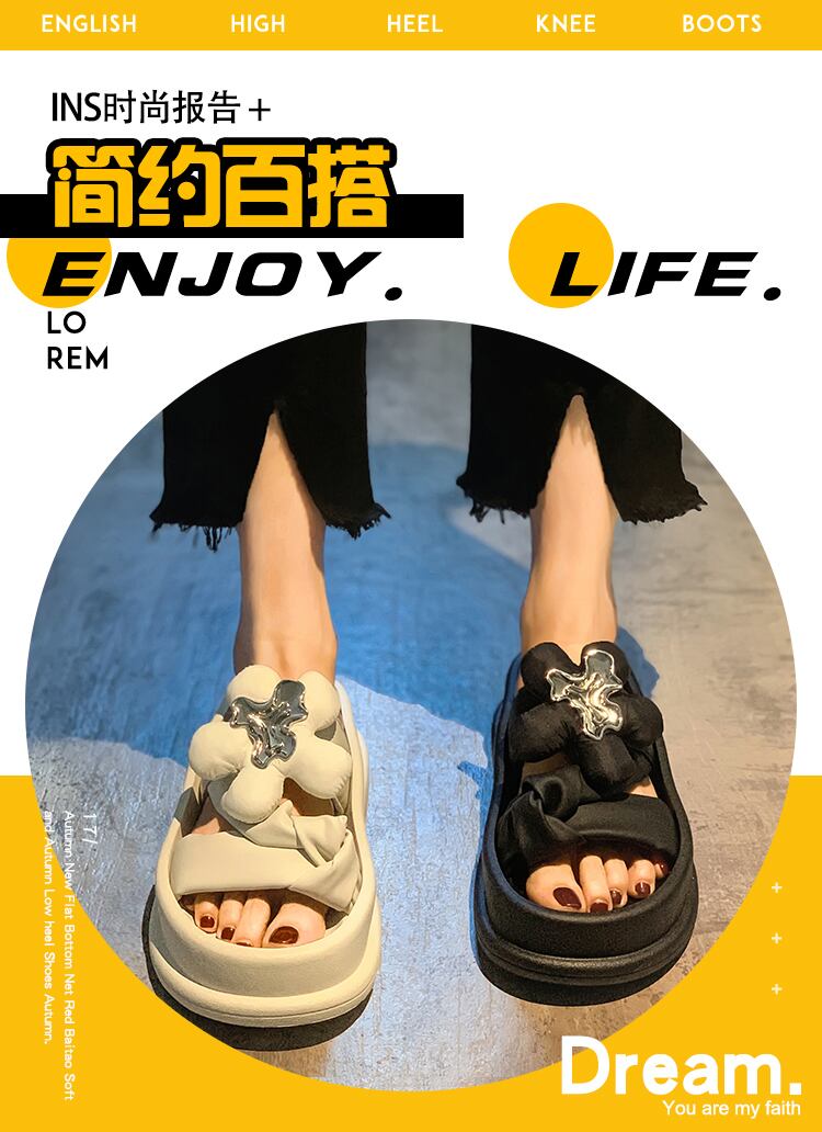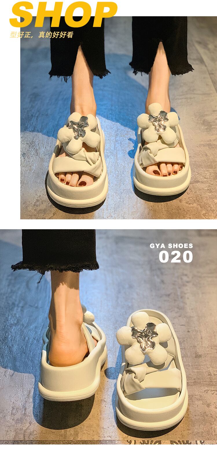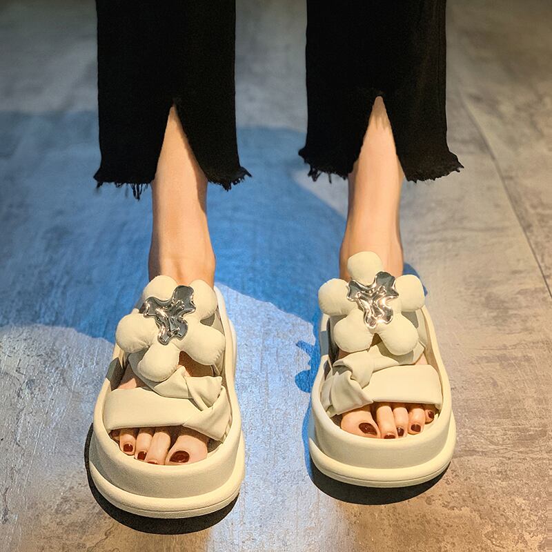 サンダルとスリッパの女性は2022年夏に新しいネットレッドスーパーファイアフラワーフライドストリートファッションスポンジケーキ厚底滑り止めサンダルを着用 ミュール 靴 シューズ サマー 夏物 フラワーデザイン jxjxf73999933237