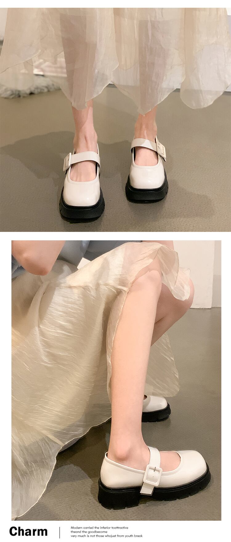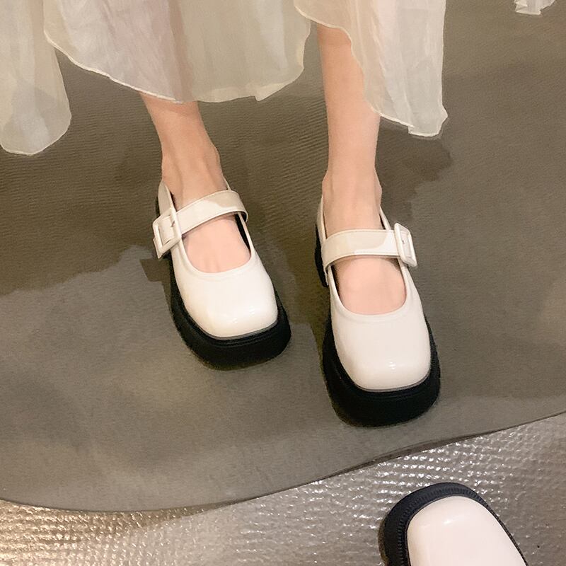 メリージェーンの靴女性の2022年夏の新しいファッションオールマッチese大学ベルクロ厚いヒール滑り止めの小さな革の靴 シューズ サマー 夏物 レザー jxjxf4084394989