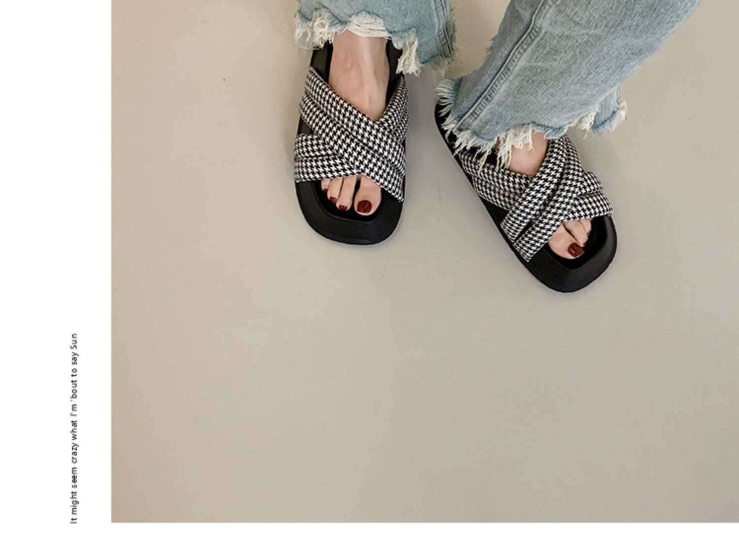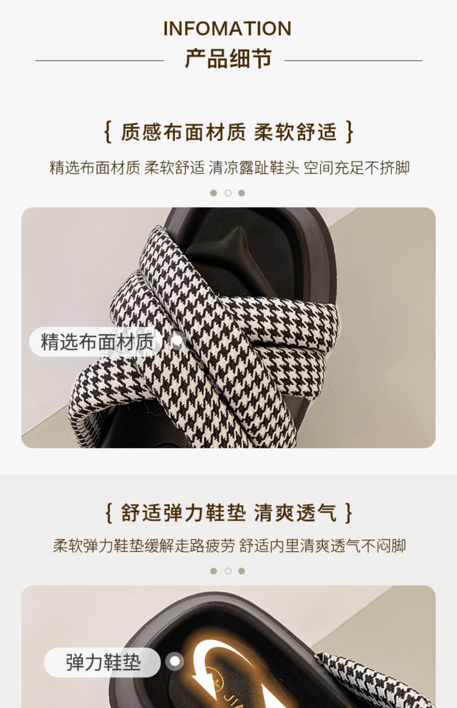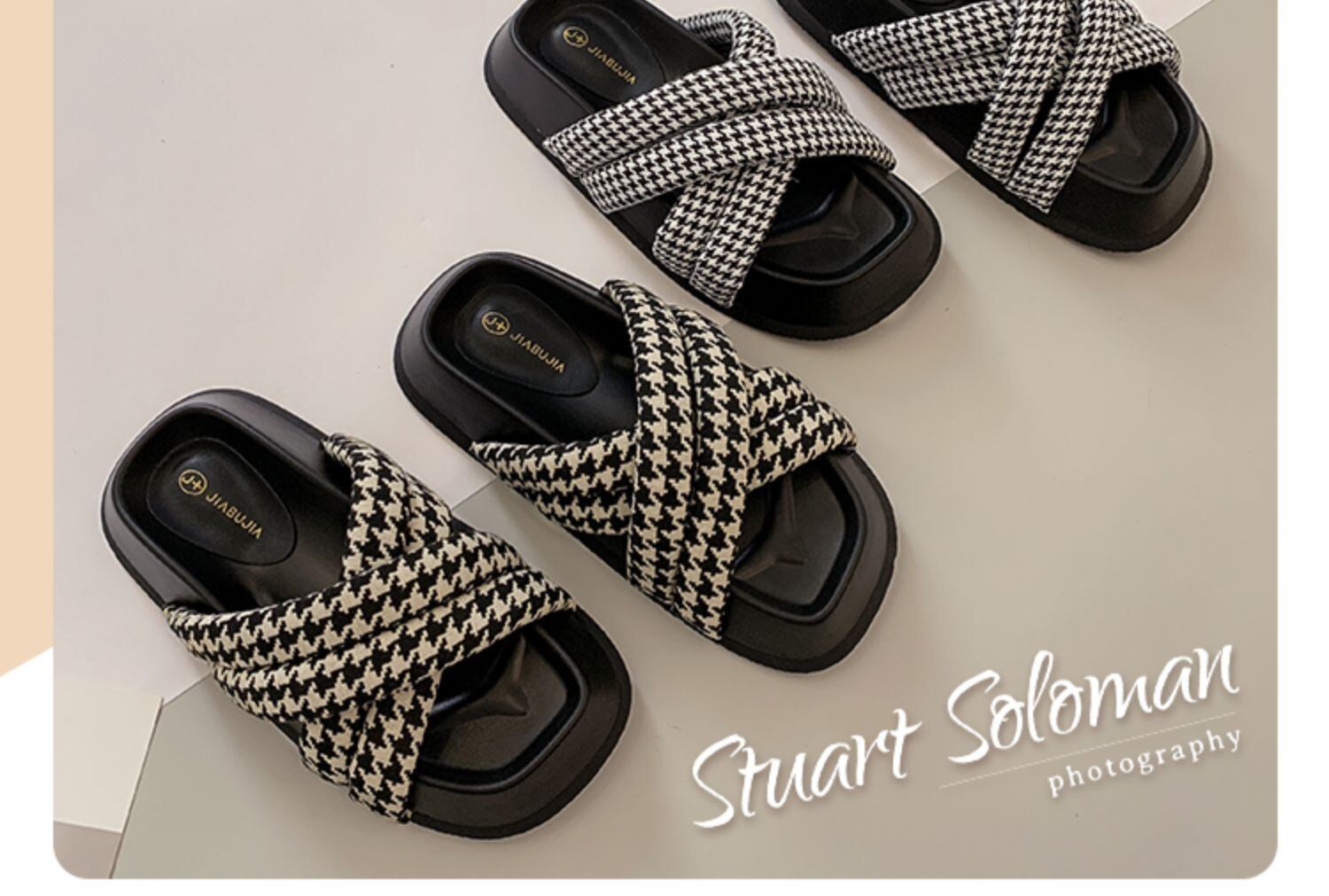スリッパレディースサマーウェア2022新しいファッションオールマッチレトロ千鳥格子スポンジケーキ厚底滑り止めサンダルとスリッパ ミュール 靴 シューズ 夏物 jxjxf26120549992