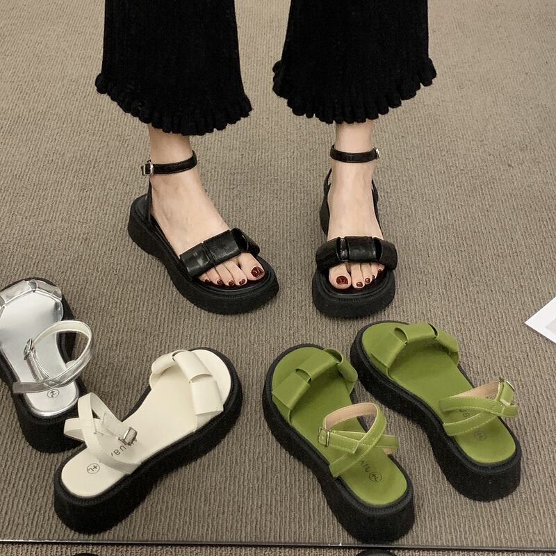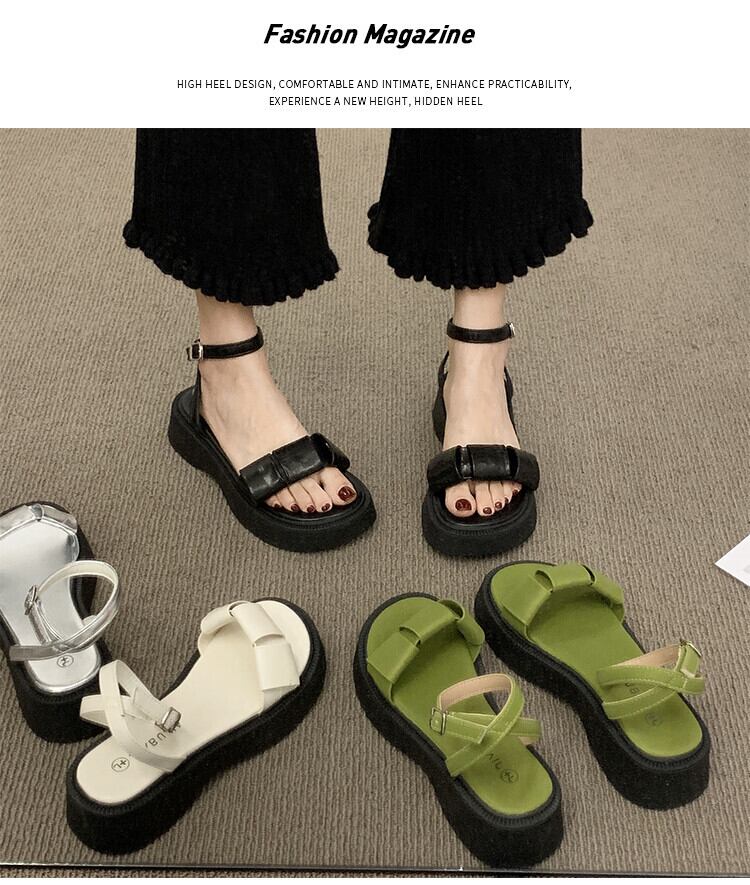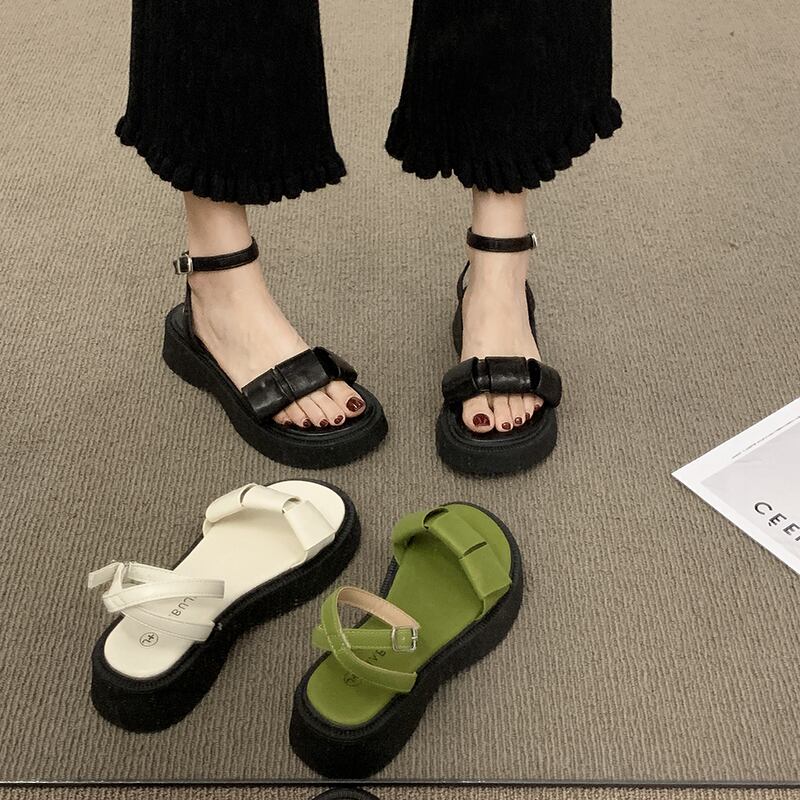 女性のサンダル2022年夏新しいファッションオールマッチ学生レトロスポンジケーキ厚い底滑り止め一言ベルトビーチシューズ 靴 サマー 夏物 ハーネス スリッポン jxjxf91682587637