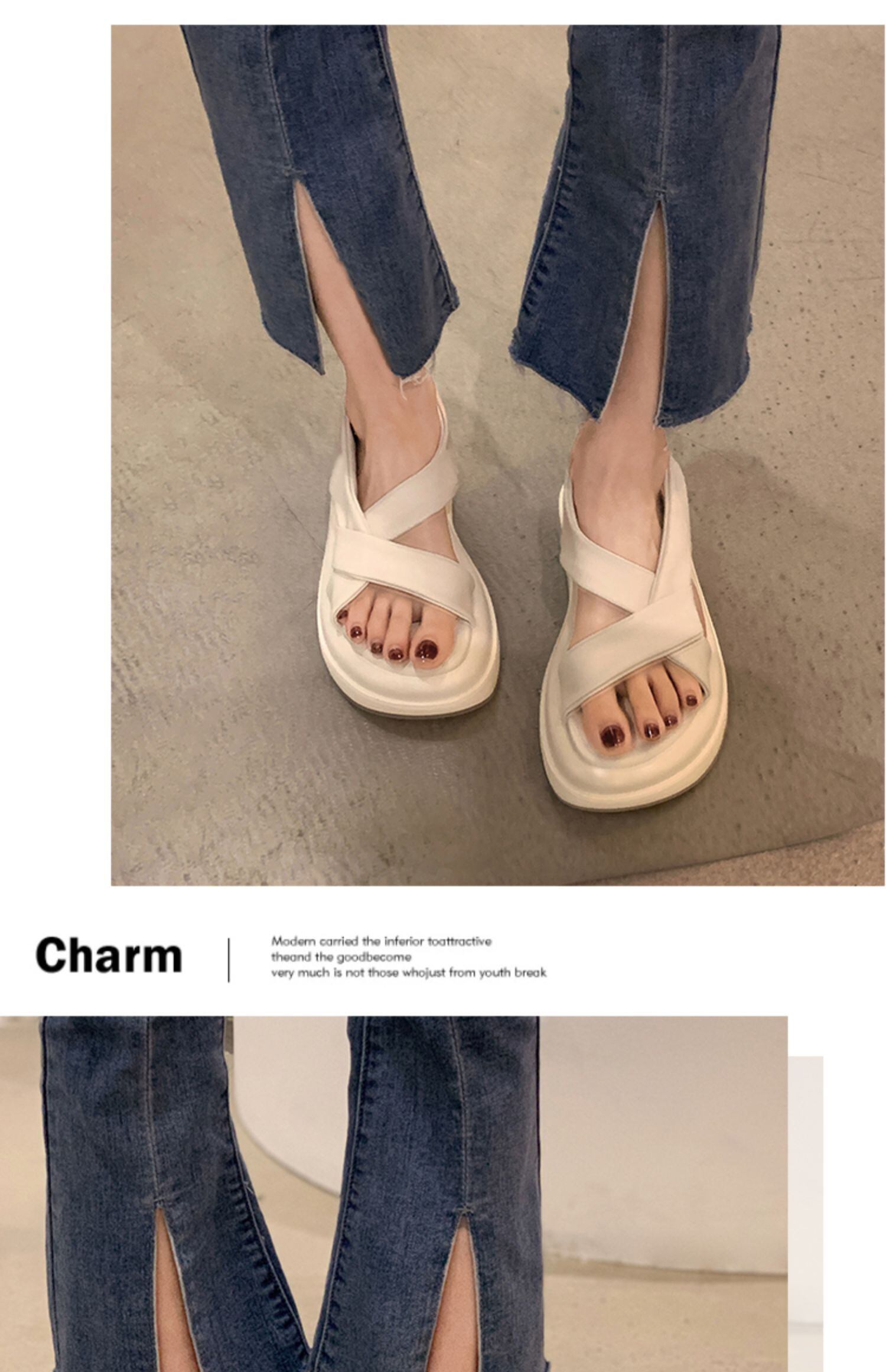 レディースサンダル2022年夏新作ファッションオールマッチクロススチューデントスポンジケーキ厚底滑り止めカジュアルビーチシューズ 靴 サマー 夏物 jxjxf61687625803