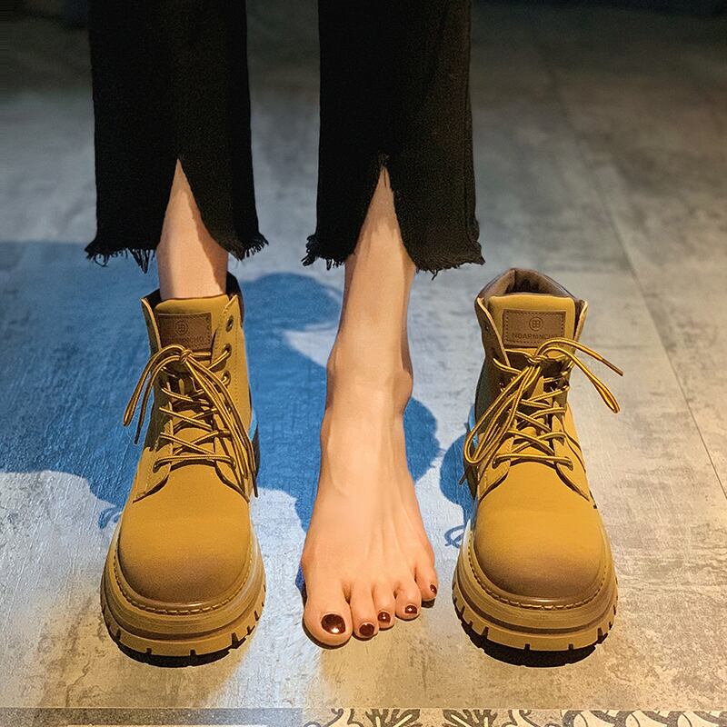 厚底マーティンブーツ女性の2022年夏の新しいスーパーオールマッチカジュアルショートブーツレトロな英国風車黄色のブーツ 靴 シューズ サマー 夏物 jxjxf99935223111
