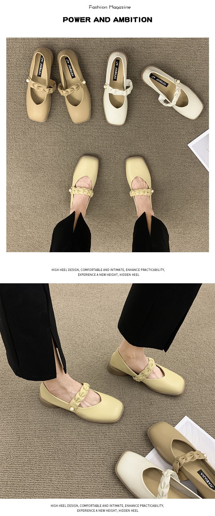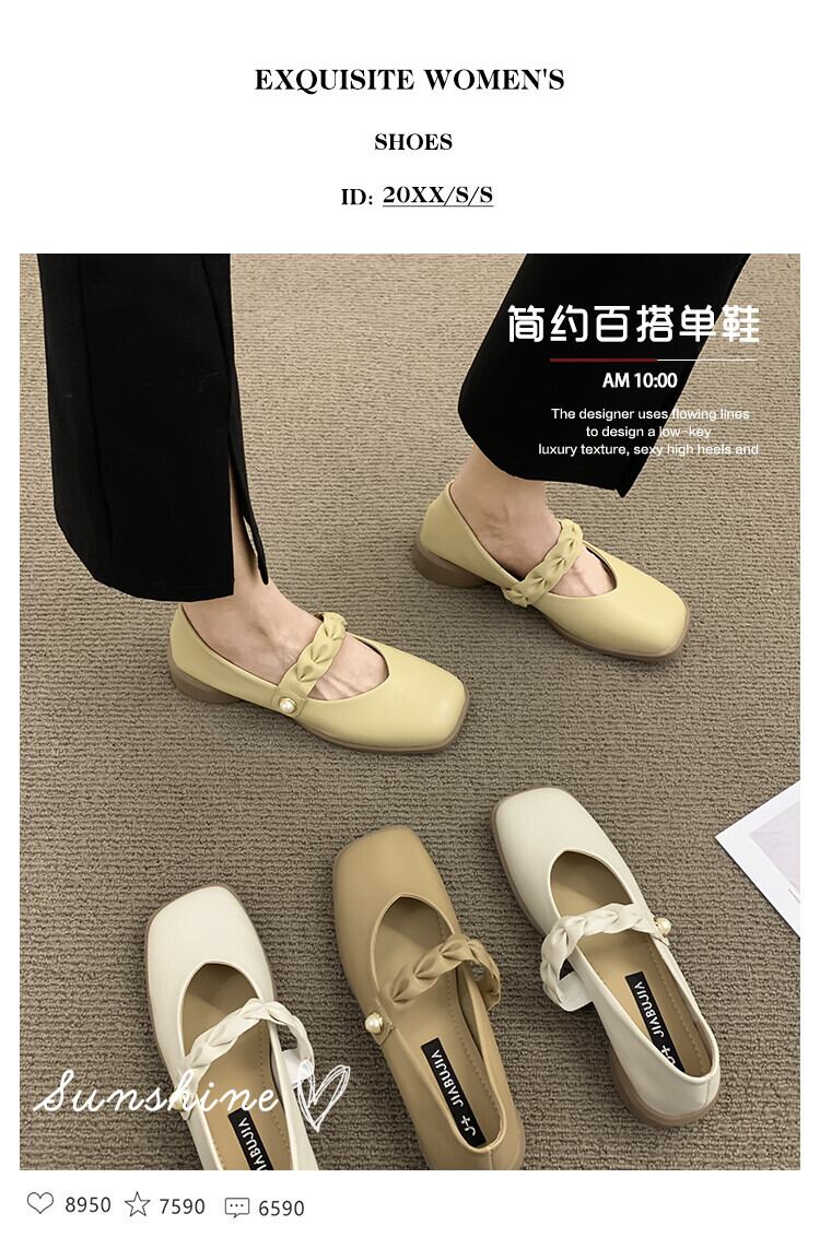 浅い口のシングルシューズ女性の2022年の新しいフランスの気質のプロの通勤オールマッチイブニングイブニングウィンドフラットボトムスクエアトゥおばあちゃんの靴 スクウェア jxjxf67868915114
