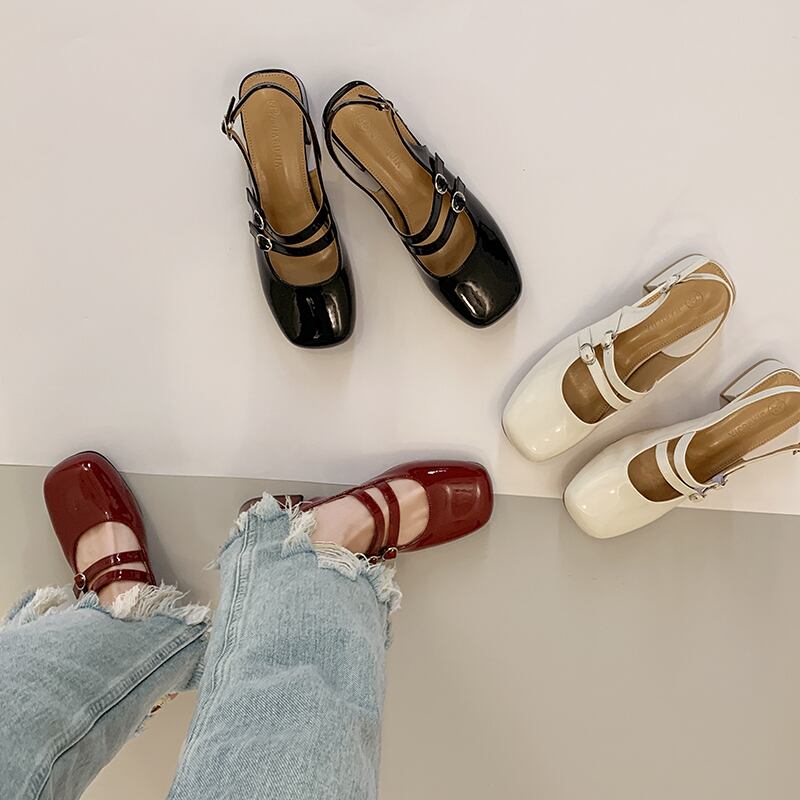 メリージェーンサンダルレディース2022夏の新しいスーパーファッションオールマッチウエスタンスタイルの厚いヒール滑り止めレトロな小さな革の靴 シューズ サマー 夏物 レザー jxjxf20532304956
