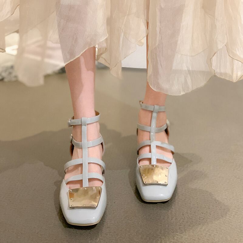 シングルシューズレディースサマーモデル2022年新作フレンチ気質オールマッチファッションシンプルスーパーファイアメタルローヒールスモールレザーシューズサマー 靴 夏物 jxjxf87882165162