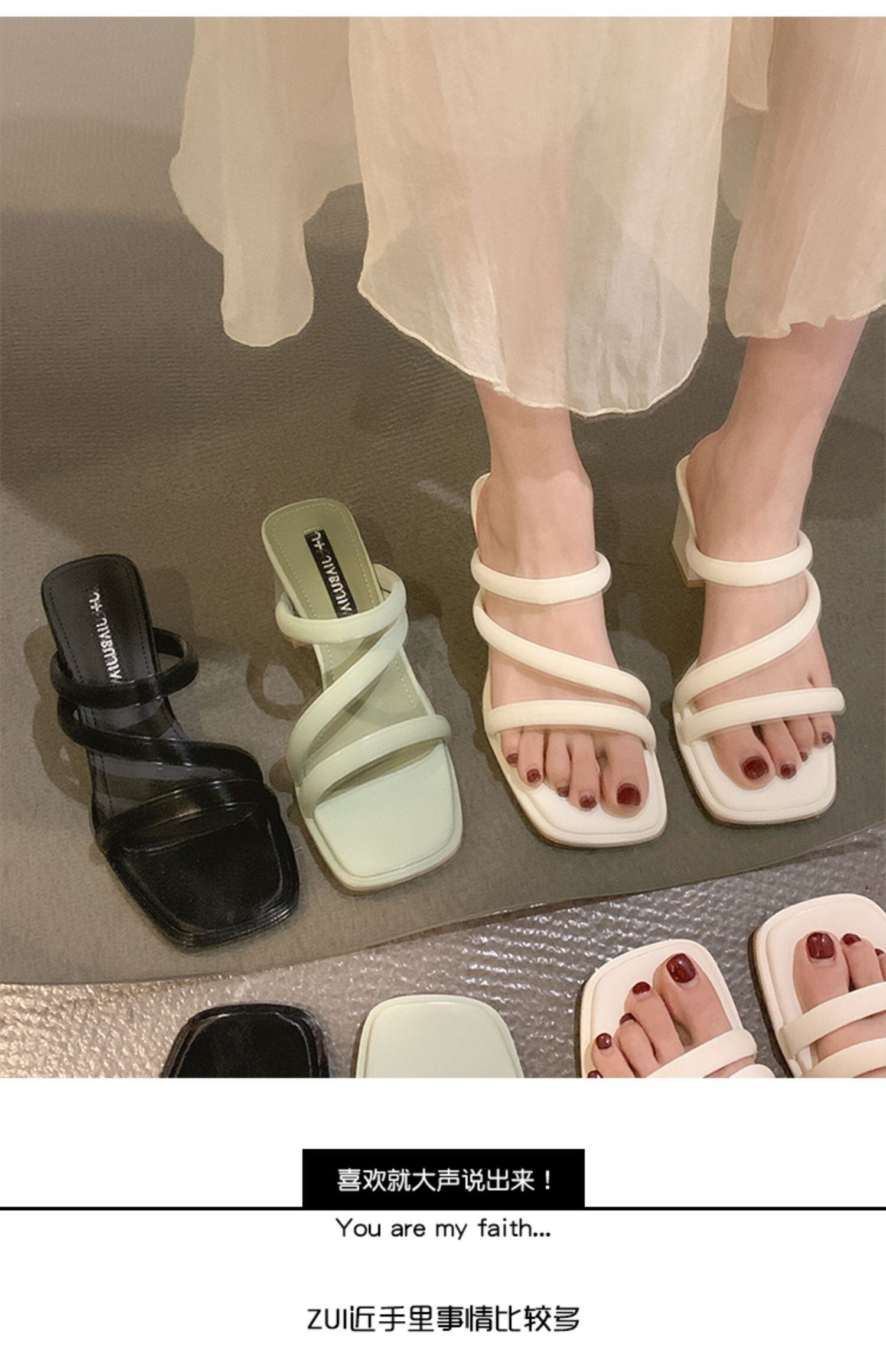 スタイルサンダルとスリッパ女性のハイヒールアウターウェア2022夏バージョンファッションフランスの気質妖精風厚いヒールサンダル 靴 シューズ ミュール サマー 夏物 jxjxf74195975143