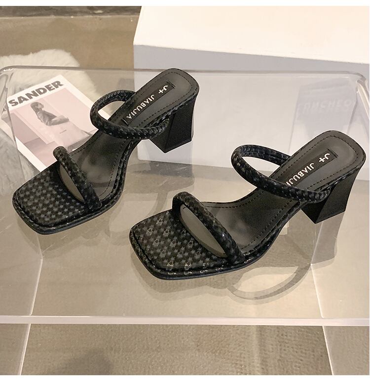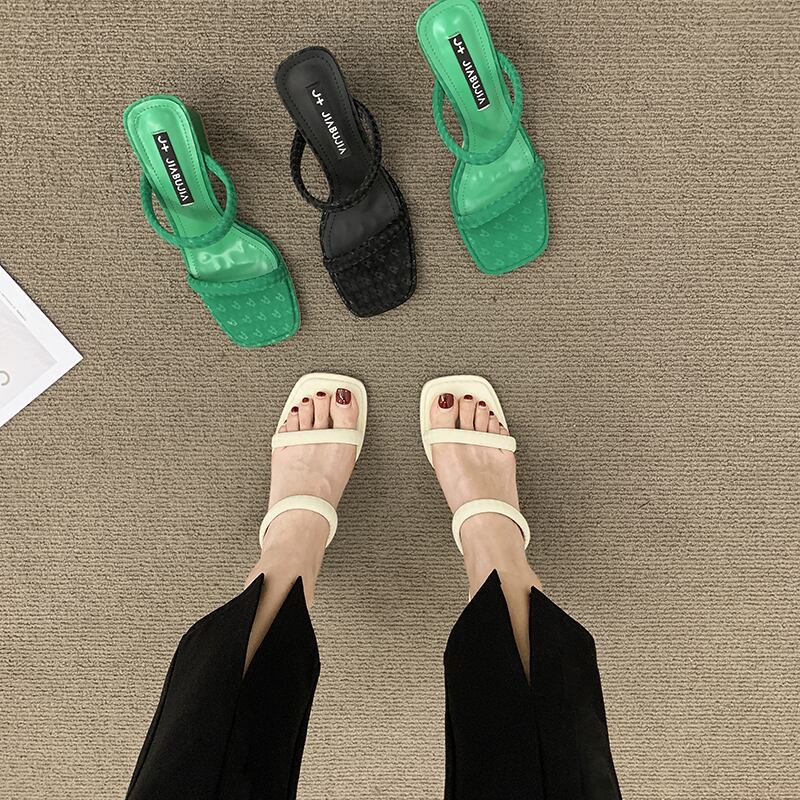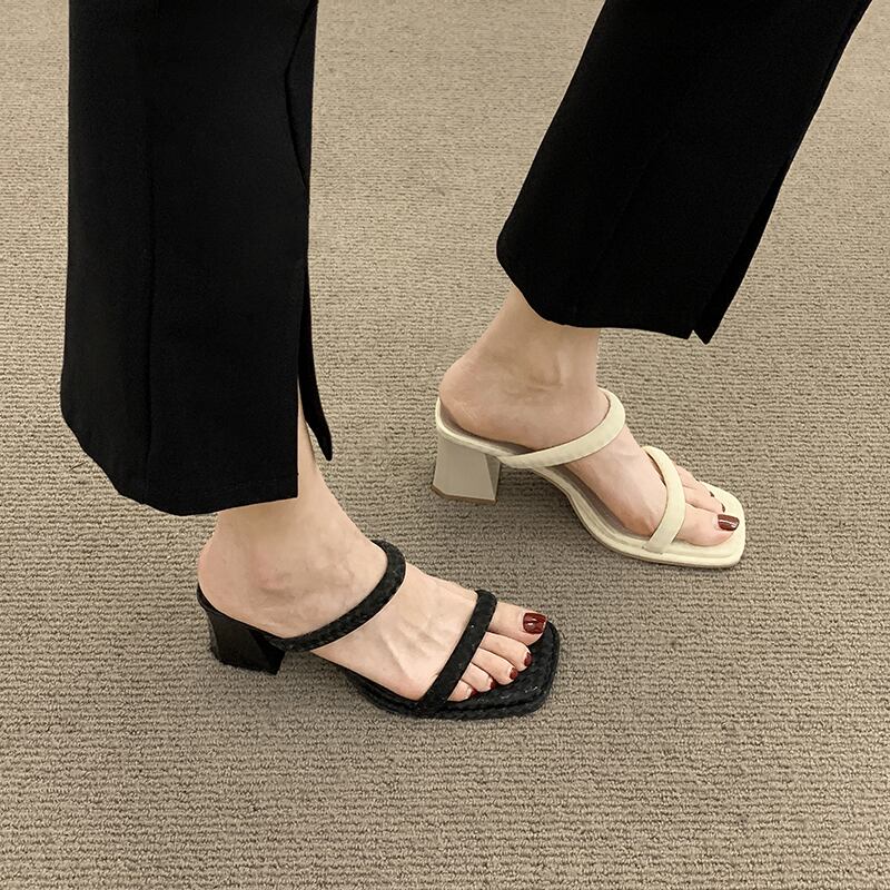 ハイヒールサンダル2022夏の新しいスタイルのeignスタイルのアウターウェアファッショナブルなオールマッチフランスの気質厚いヒールの滑り止めスリッパ 靴 シューズ ミュール サマー 夏物 jxjxf28254887423
