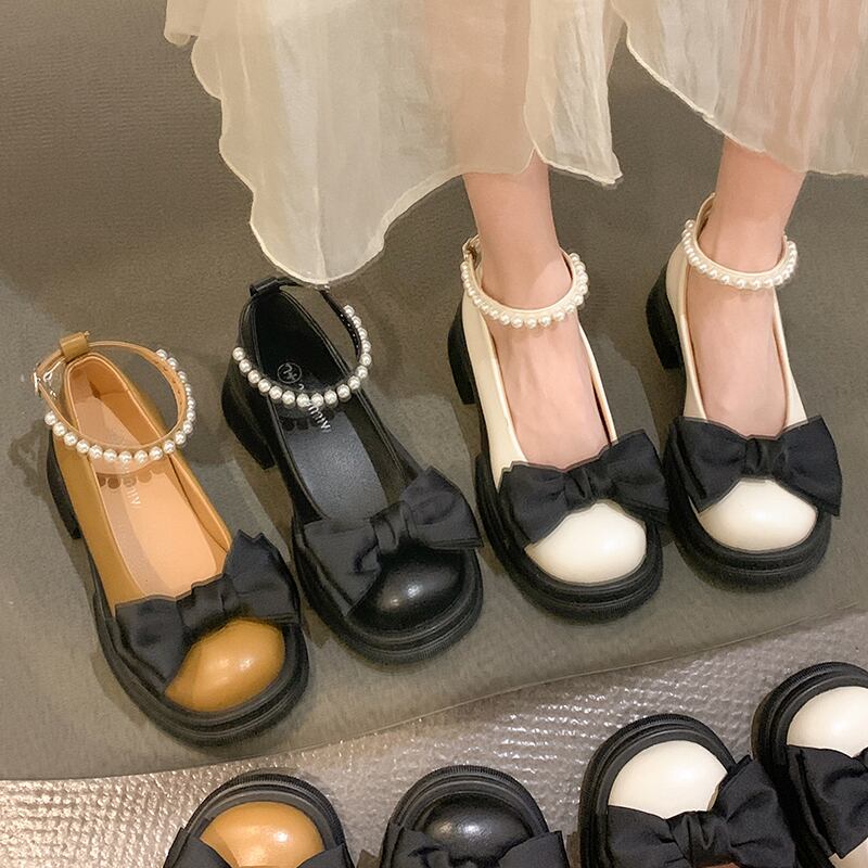 メリージェーンの小さな革の靴夏の新しいニッチな甘いeseの弓とスカート大学の浅い平らな靴 シューズ リボン 大人ガーリー スウィート キュート カジュアル サマー 夏物 レザー jxjxf63954310111