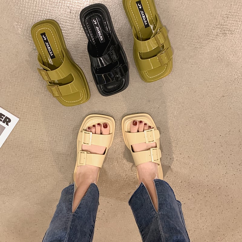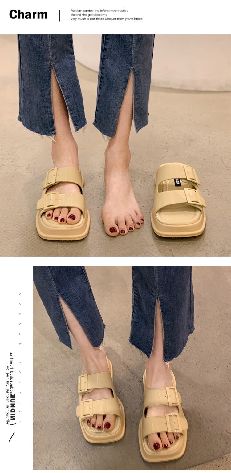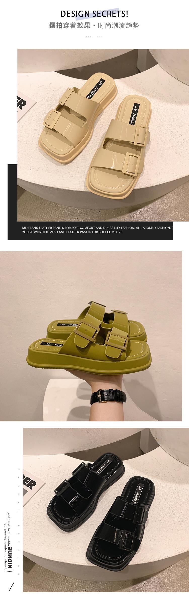 スリッパ女性の2022年夏の新しいスタイルのスクエアヘッドファッションオールマッチ厚底滑り止めベルトバックルビーチサンダル ミュール 靴 シューズ サマー 夏物 ハーネス スクウェア jxjxf8029941504