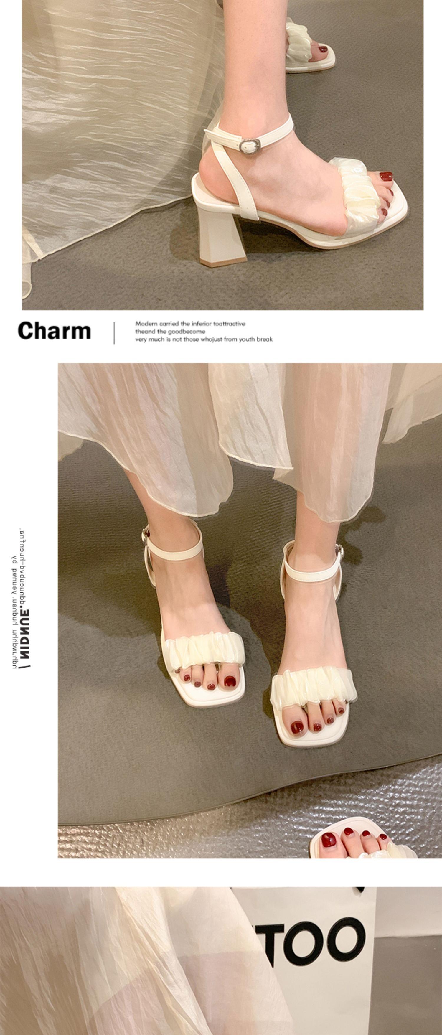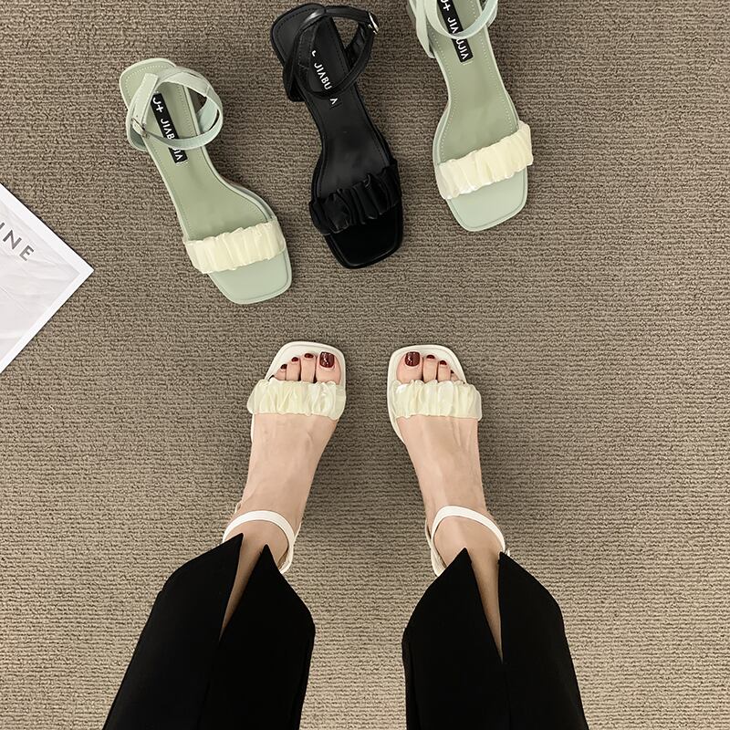 ヒールサンダル女性の2022年夏の新しいフランスのトレンド気質の妖精スタイルのファッションは、厚いヒールの靴と一言で一致します シューズ サマー 夏物 jxjxf53160908322