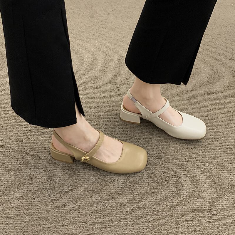 メリージェーンサンダル女性の2022年夏新しいミドルヒール滑り止めファッションオールマッチ優しいレトロ厚いヒール小さな革の靴の潮 シューズ サマー 夏物 レザー jxjxf90678031702