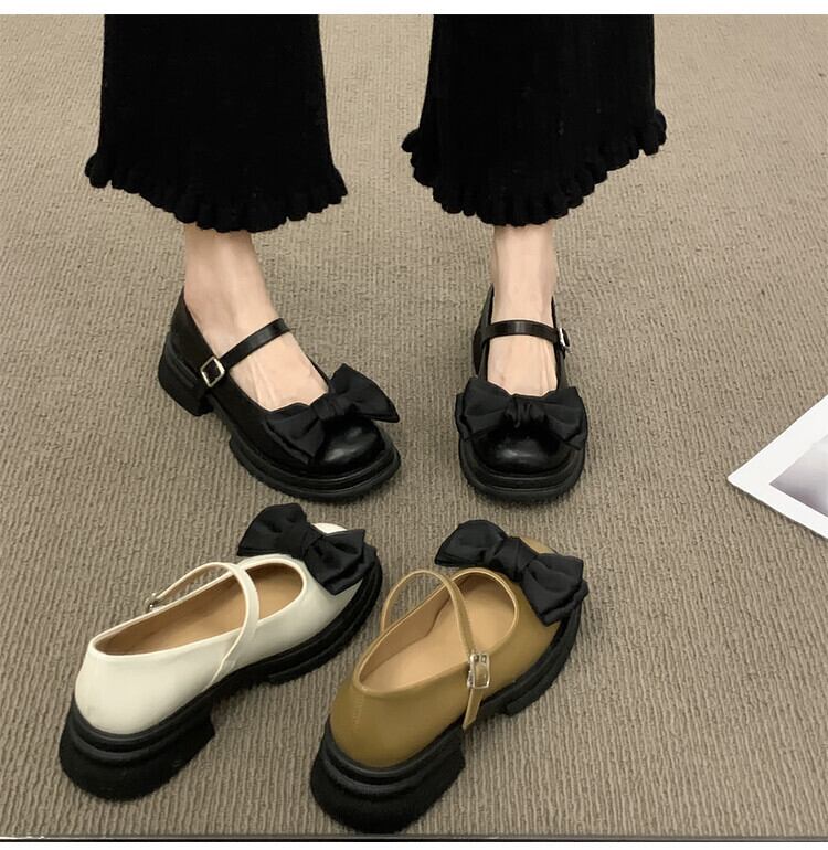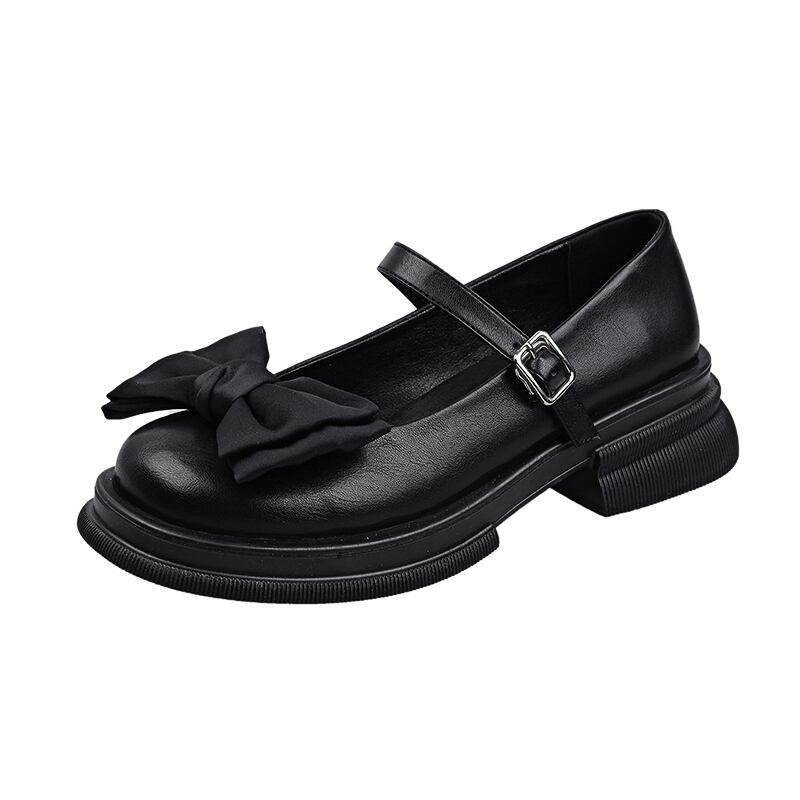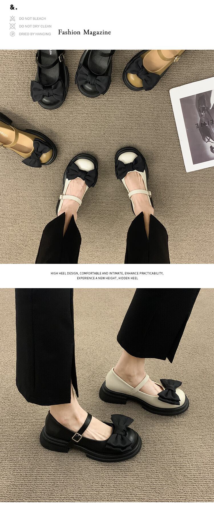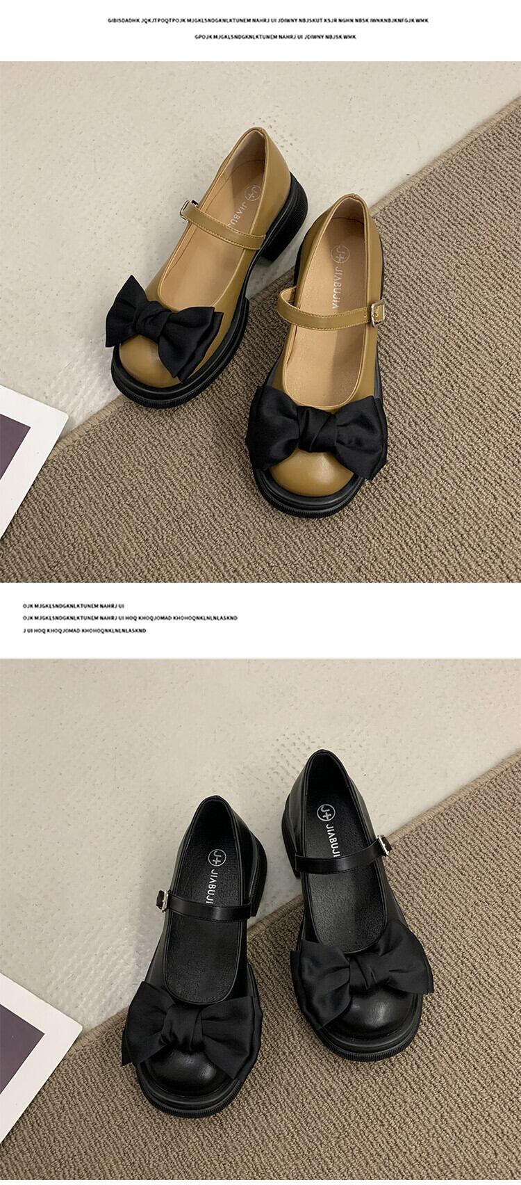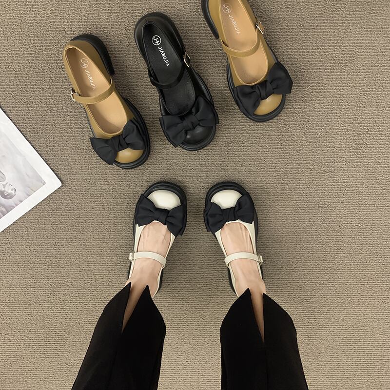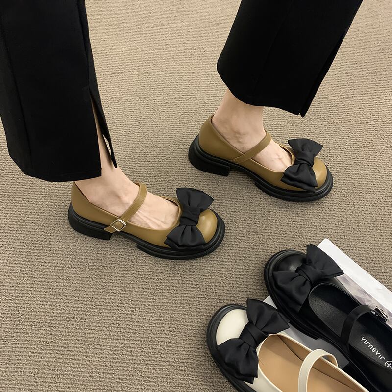メリージェーンの靴女性の2022年夏の新しいファッションオールマッチボウ浅い厚いヒール滑り止めレトロな小さな革の靴 シューズ リボン サマー 夏物 レザー jxjxf43301481477