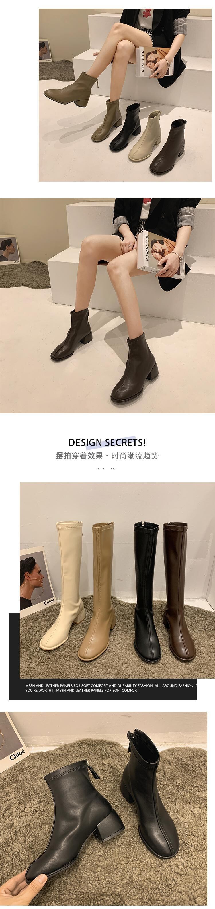 スリムに見えるロングブーツ女性の2022年夏の新しいファッショントレンドスーパーニッチデザイン厚手のスキニーショートブーツ 靴 シューズ サマー 夏物 jxjxf35300574294
