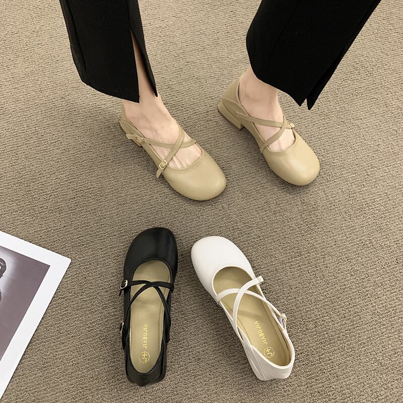 これらのシングルシューズ女性の2022年夏の新しいクロスラウンドヘッドフラットボトム滑り止めネットレッドファッションオールマッチレトロスモールレザーシューズ 靴 サマー 夏物 jxjxf66812607211
