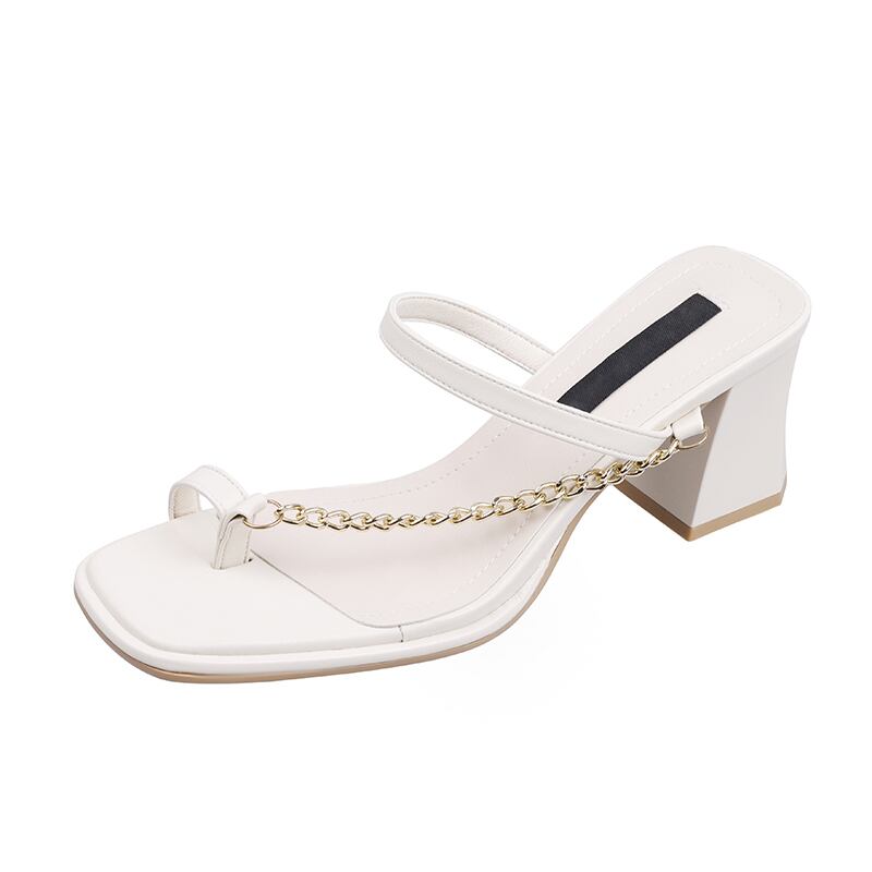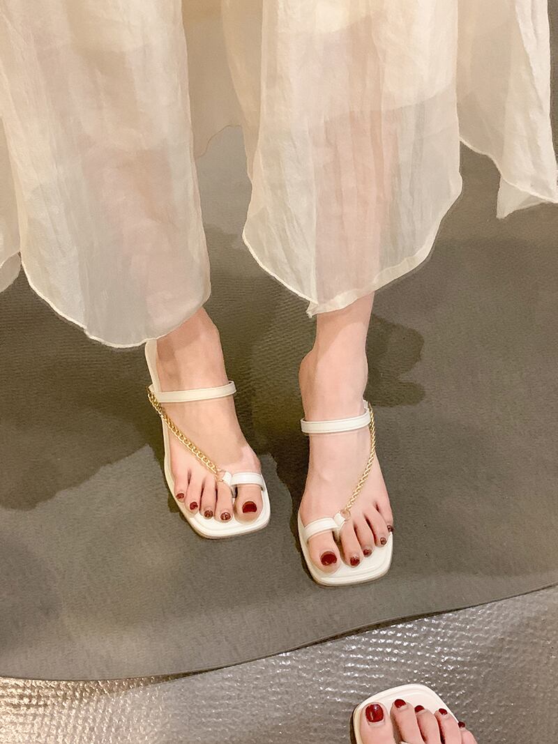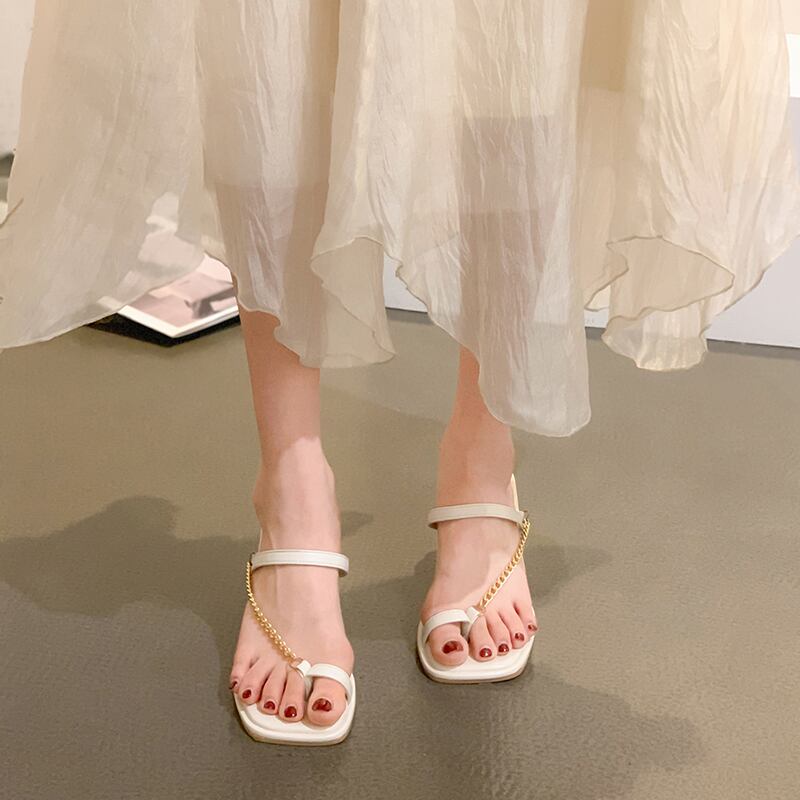 つま先スリッパレディースサマーウェア2022新作ファッションオールマッチレトロメタルチェーン厚手のヒール滑り止めサンダルとスリッパのセット ミュール 靴 シューズ 夏物 jxjxf47131510666