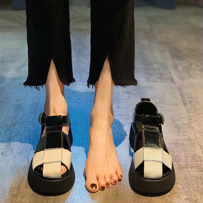 女性のシングルシューズ2022年夏新しいネットレッドスーパーオールマッチレトロベルトバックル学生厚いヒール滑り止めの小さな革の靴 サマー 夏物 レザー ハーネス jxjxf5979233823