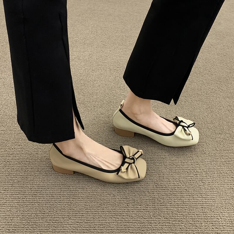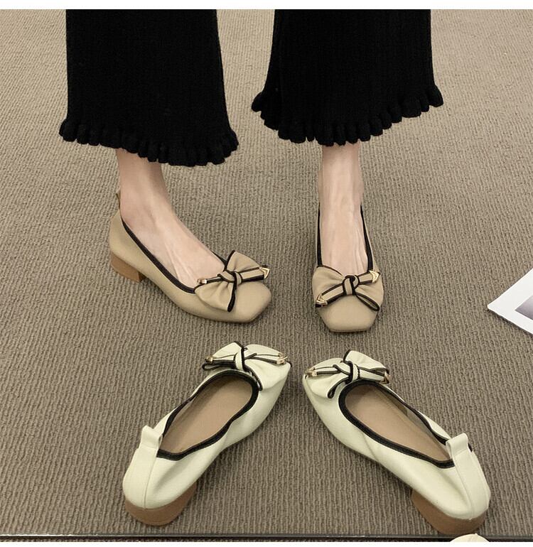 シングルシューズ女性の2022年夏の新しいファッションオールマッチレトロボウスクエアヘッド浅い口厚いヒール滑り止めおばあちゃんの靴 リボン サマー 夏物 スクウェア jxjxf69716417485