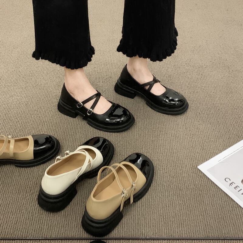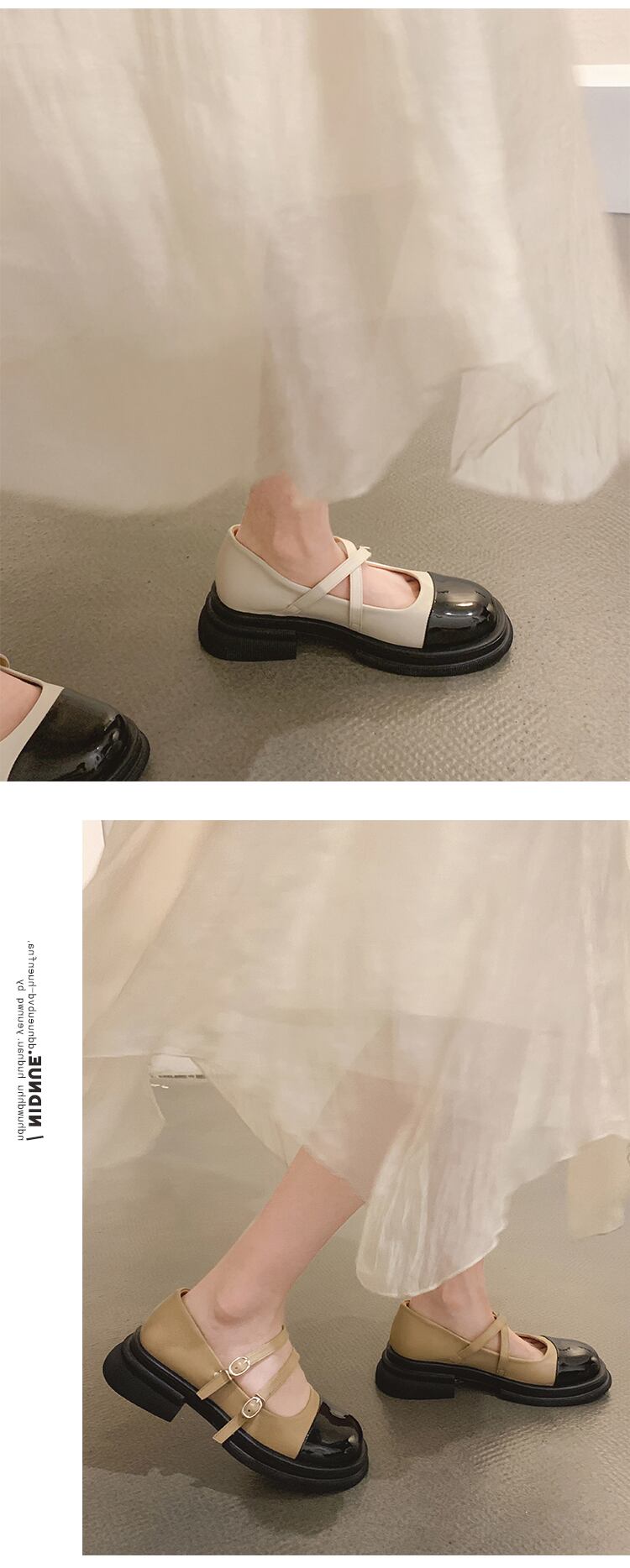 シングルシューズ女性の2022年夏新しいフランスのレトロなカラーマッチングファッションカジュアルオールマッチese厚い底メアリージェーン小さな革の靴 サマー 夏物 レザー jxjxf17165247847