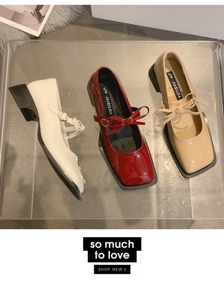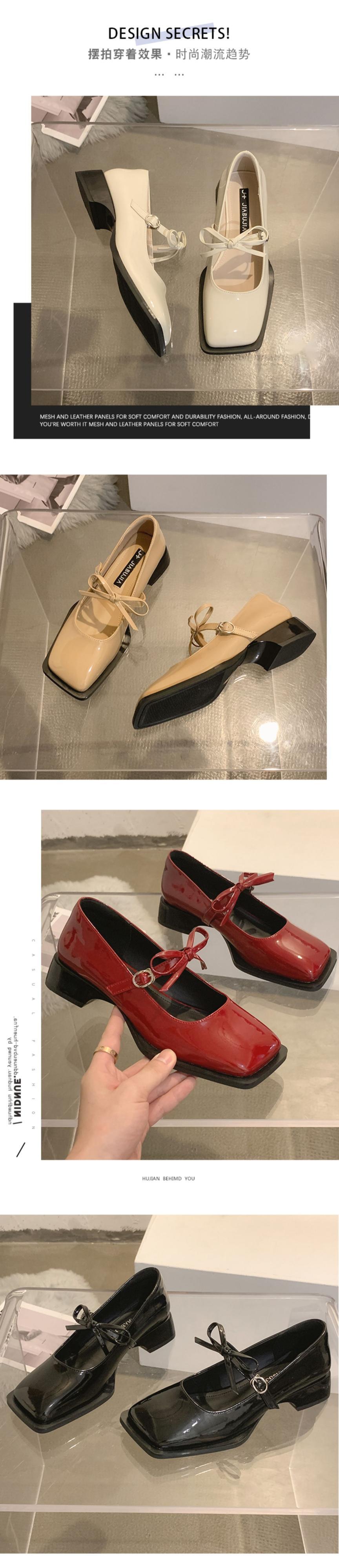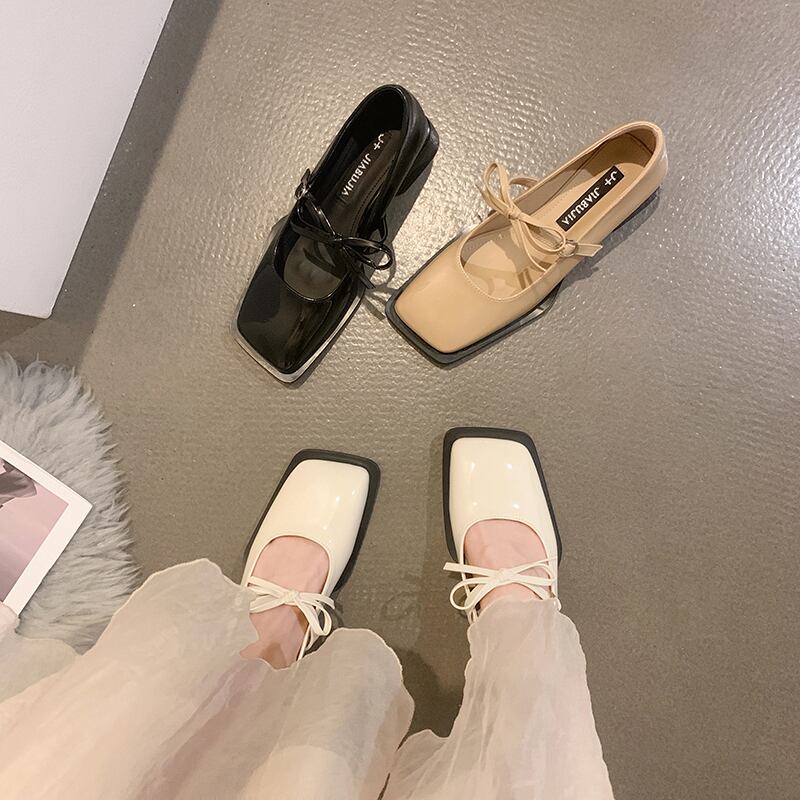 JiaBujiaスクエアトウシューズ2022年夏の女性の新しいレトロな弓ローヒールの甘くてクールなメリージェーンの小さな革の靴 リボン 大人ガーリー スウィート キュート カジュアル サマー 夏物 レザー スクウェア jxjxf29247277738