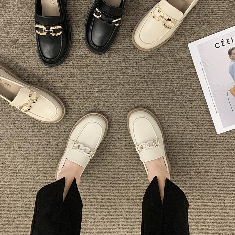 ブリティッシュスタイルのシングルシューズレディース2022年夏の新しいファッションオールマッチレトロメタルラウンドトゥローヒールノンスリップローファー 靴 サマー 夏物 ラウンドトー jxjxf79443746209