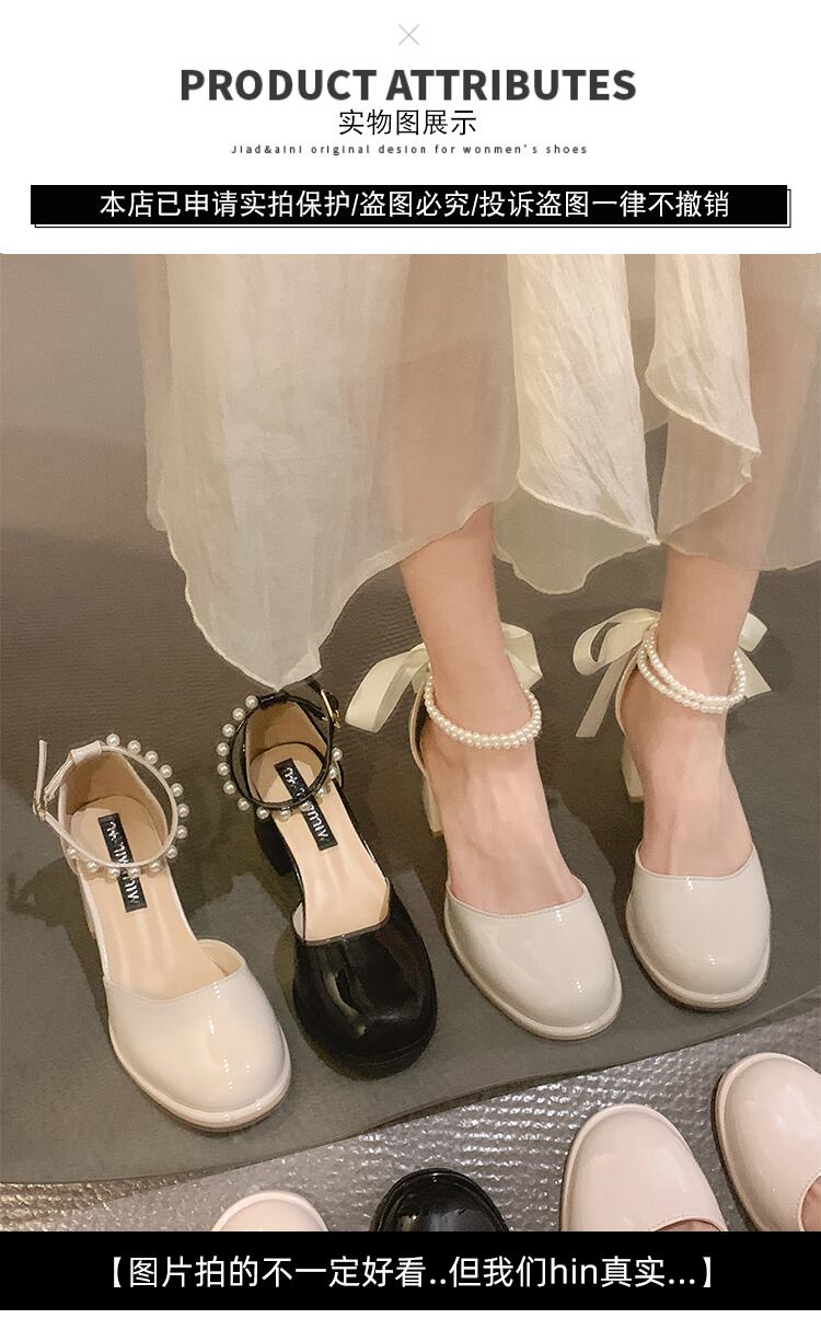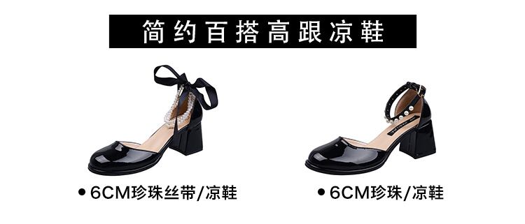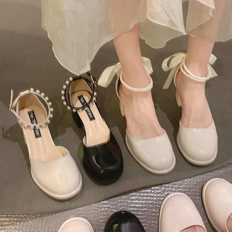シングルシューズ女性の2022年夏の新しいファッションフレンチパール一言ニッチな気質の厚いヒールメアリージェーンサンダル 靴 サマー 夏物 真珠 jxjxf47431883373