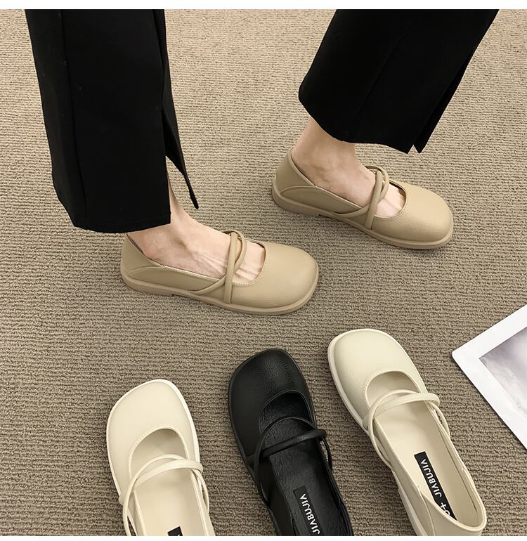 靴の女性の2022年の新しい夏のファッションオールマッチフレンチレトロスクエアトゥフラットボトム滑り止め気質小さな革の靴の潮 シューズ サマー 夏物 レザー スクウェア jxjxf11515774493