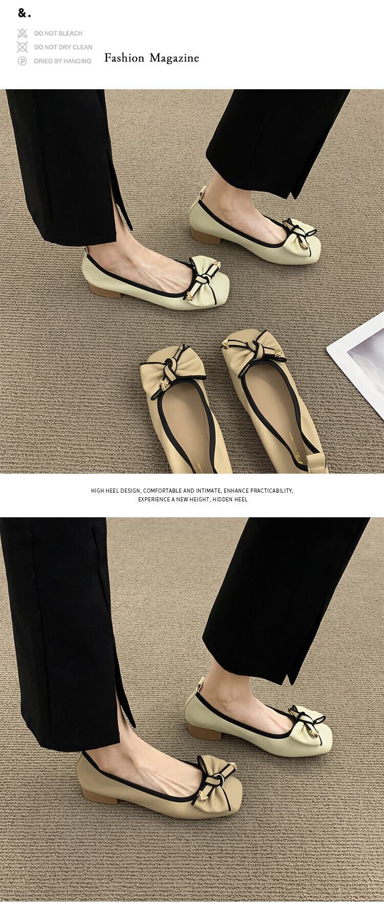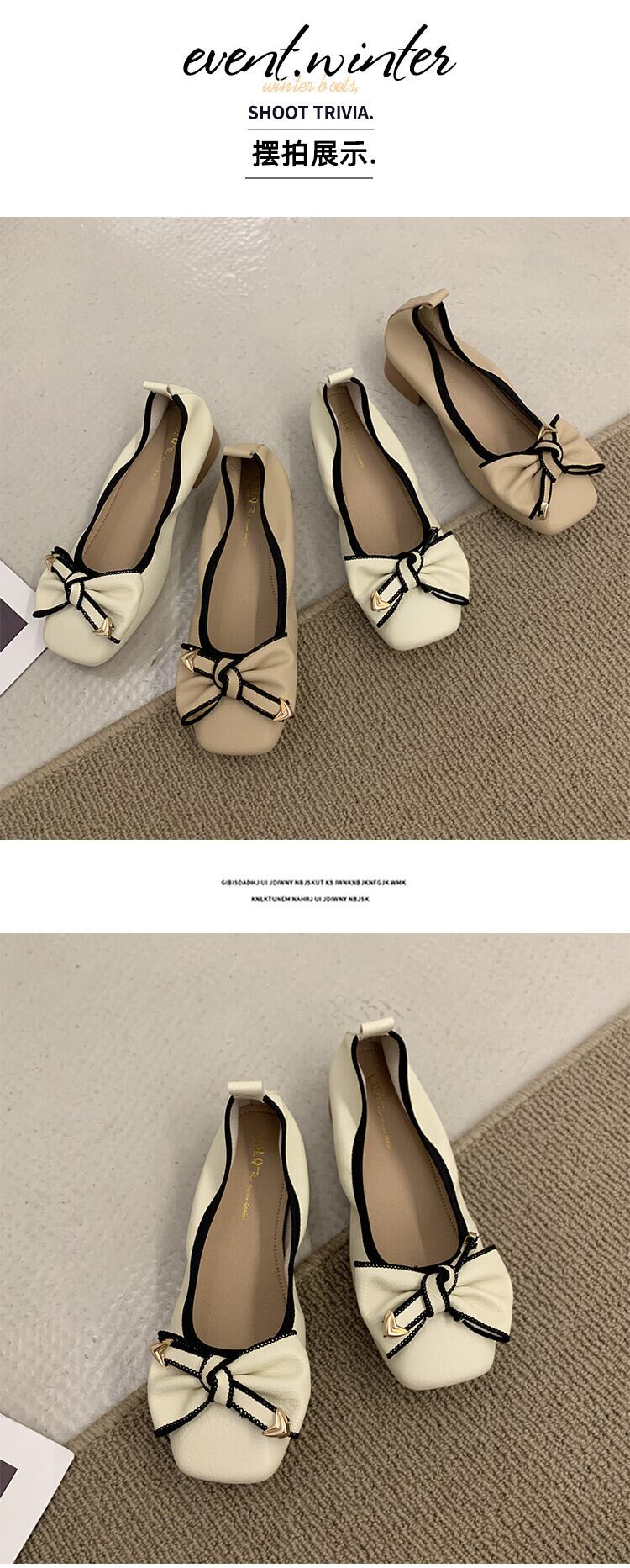 スクエアトゥシューズウィメンズ2022夏新作ファッションオールマッチレトロボウ浅い口厚ヒールノンスリップスクープシューズタイド 靴 リボン サマー 夏物 スクウェア jxjxf26963371039