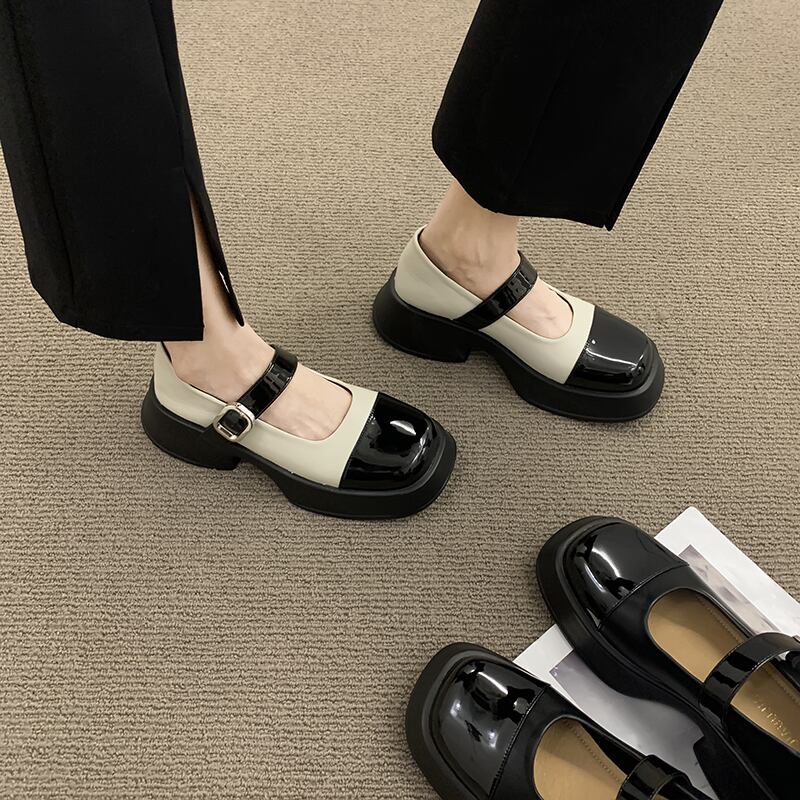 メリージェーンの靴の女性の2022年夏の新しい英国のレトロなベルトバックルファッションオールマッチの厚い底のese革の靴 シューズ サマー 夏物 レザー ハーネス jxjxf55648868404
