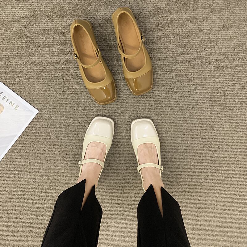 メリージェーンシューズレディース2022年夏の新しいファッションオールマッチフレンチレトロシックヒール滑り止めスクエアトゥスモールレザーシューズタイド 靴 サマー 夏物 スクウェア jxjxf88090029868