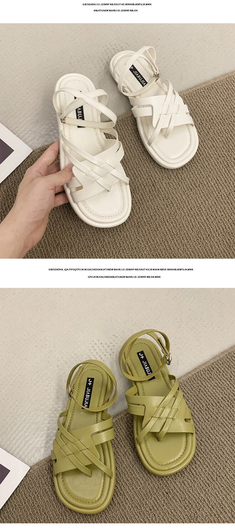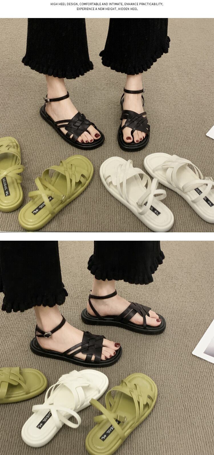 サンダル夏の女性2022年新しいネット赤スーパーファッションオールマッチレトロ織り学生フラット滑り止めローマの靴 シューズ レッド サマー 夏物 jxjxf91197056190