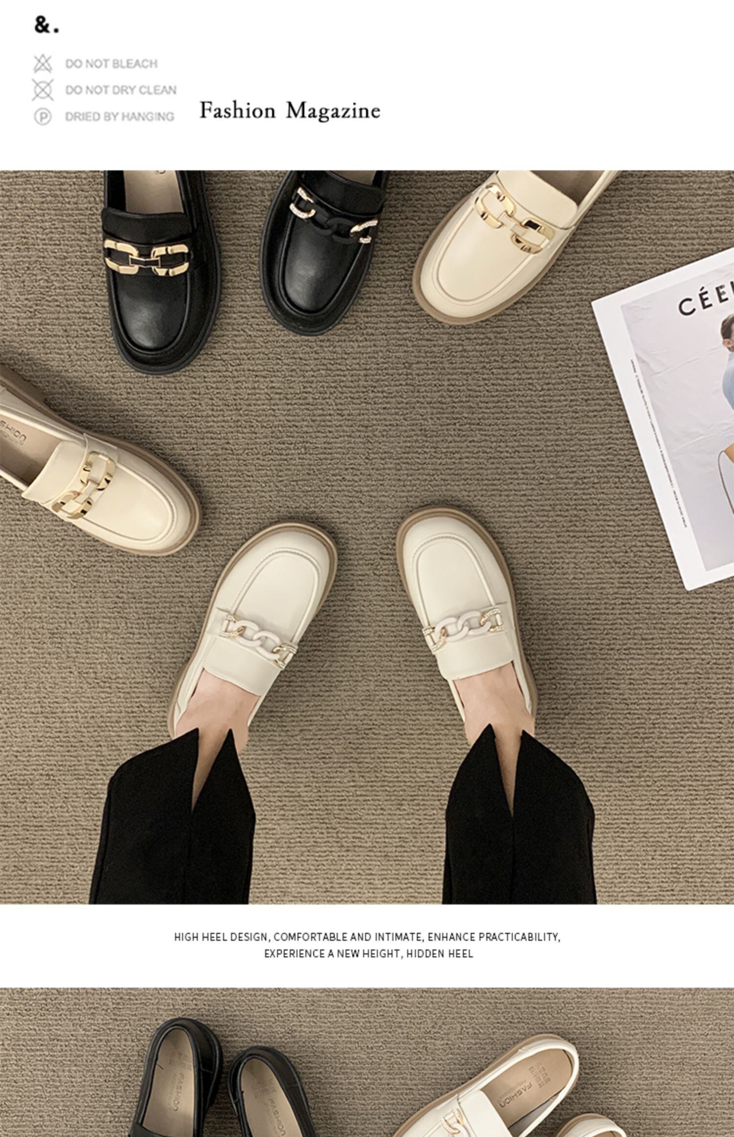 英国スタイルのローファー女性の2022年夏新しいフランスのシンプルなファッションレトロな金属のバックル厚い底滑り止めの小さな革の靴 シューズ サマー 夏物 レザー jxjxf90587544428