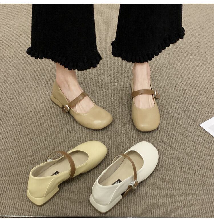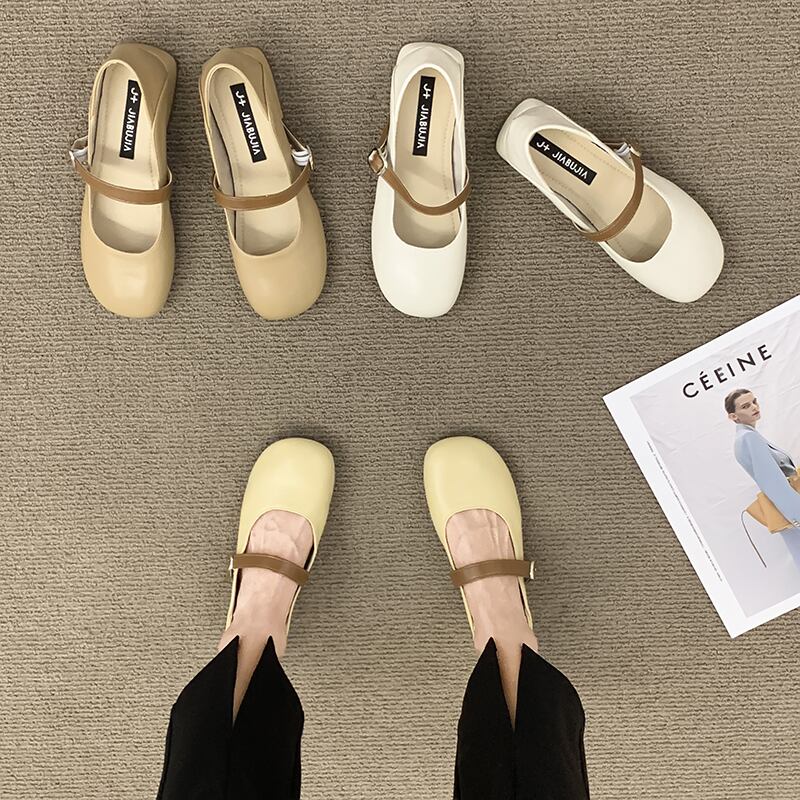シングルシューズレディース2022年夏の新作ファッションオールマッチ優しいレトロベルトバックル浅いローヒール滑り止めスモールレザーシューズ 靴 サマー 夏物 ハーネス jxjxf20740992168