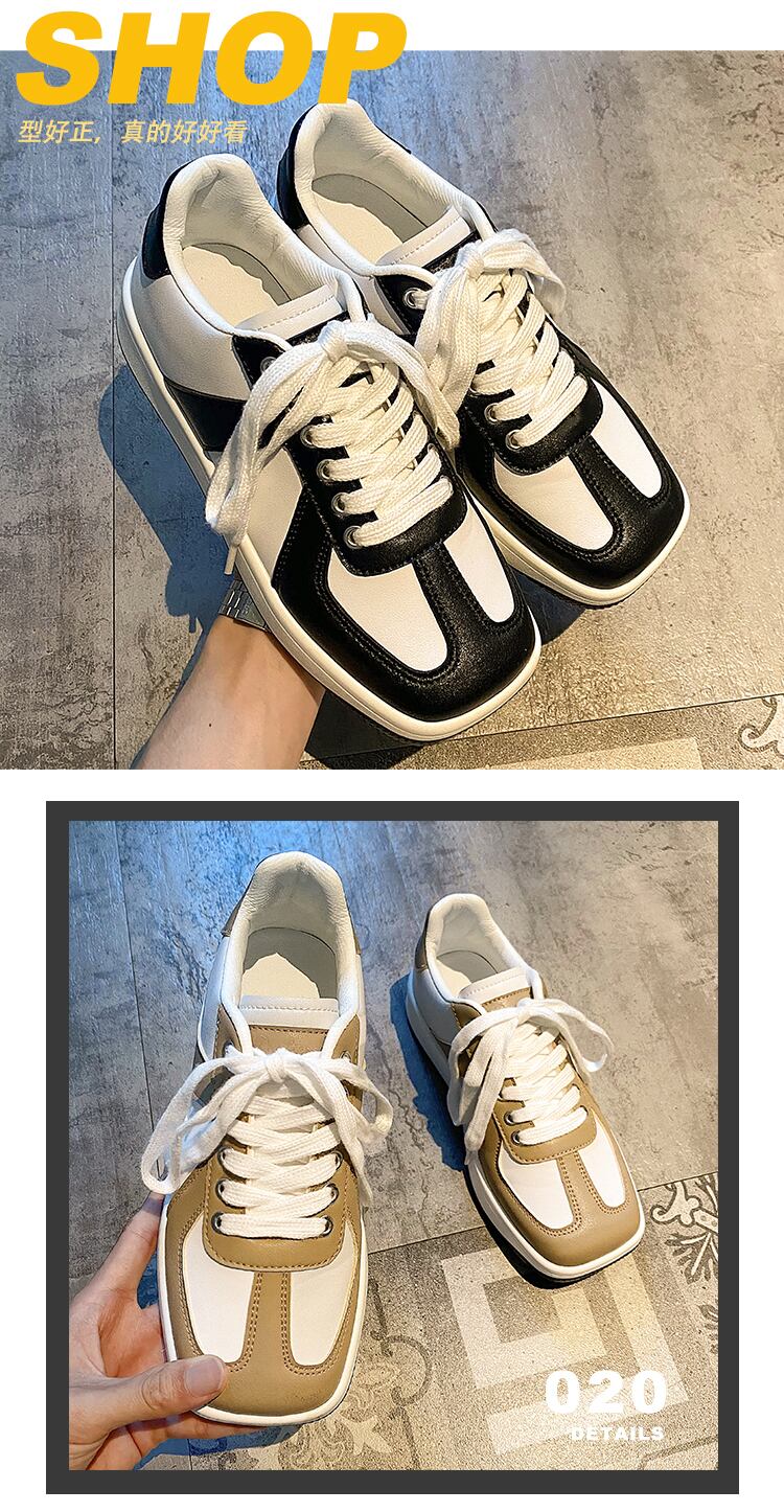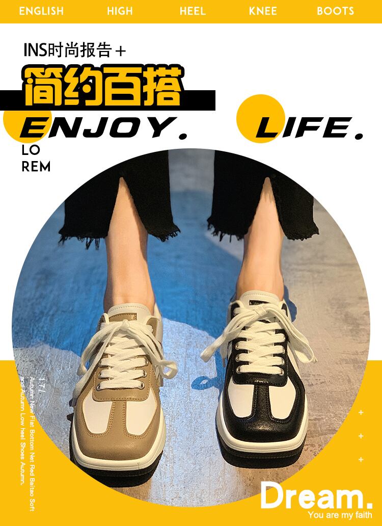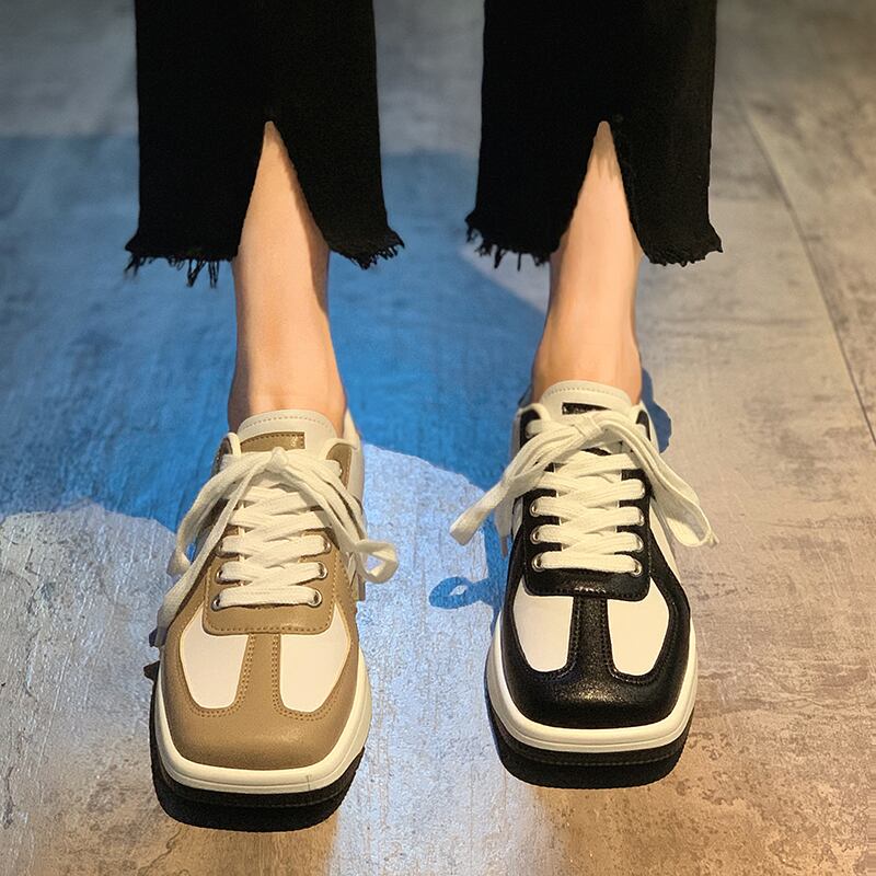 スニーカーレディース2022新しいフラットボトムファッショントレンドレトロワイルドスーパーファイアスクエアヘッドシックボトムロートップスニーカー 靴 シューズ スクウェア jxjxf72405008243