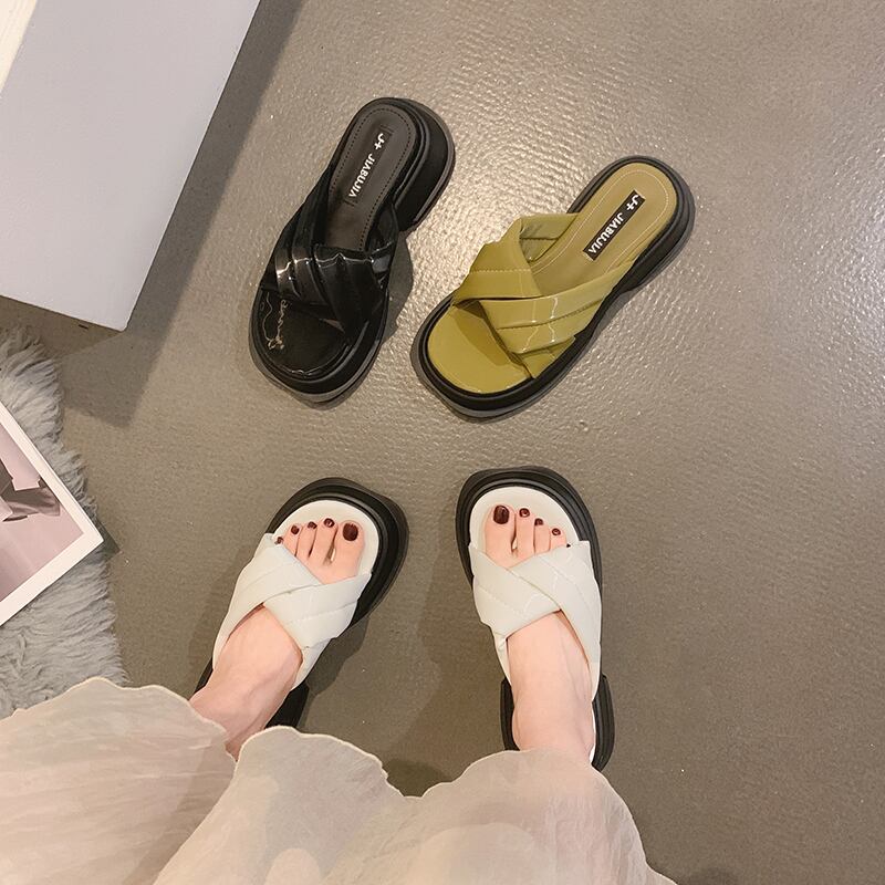 サンダルとスリッパを履く2022年の女性の夏の新しいファッションオールマッチの小さなレトロな厚いヒールの滑り止めのビーチサンダル ミュール 靴 シューズ サマー 夏物 jxjxf13604706846