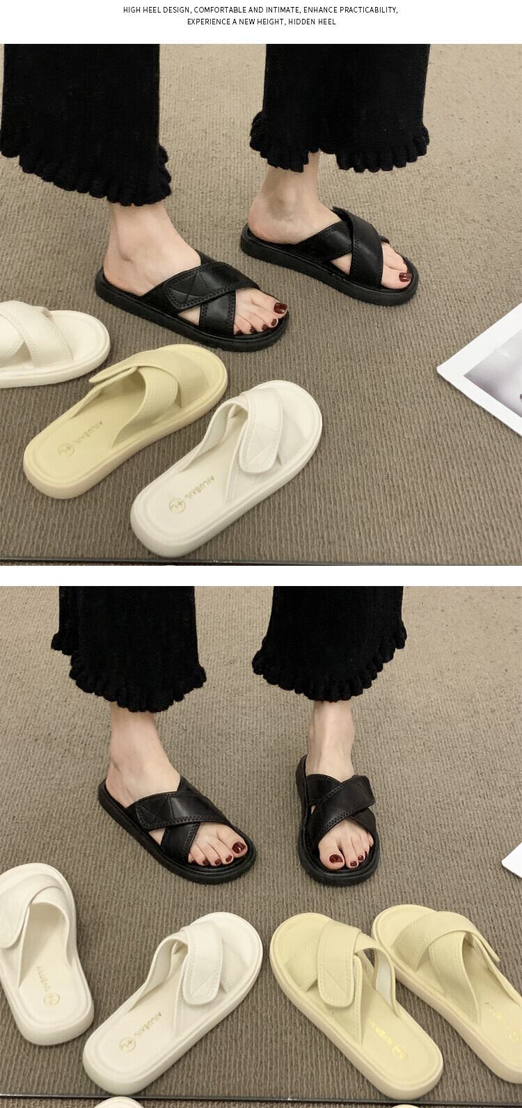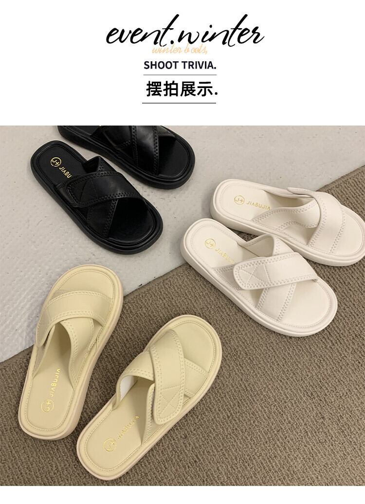 スリッパ女性の2022年夏の新しいスタイルベルクロクロスフラットボトム滑り止めファッションビーチサンダル ミュール 靴 シューズ サマー 夏物 jxjxf14694723036