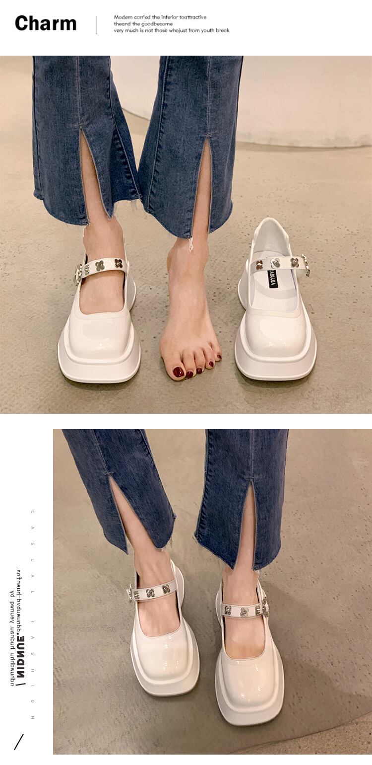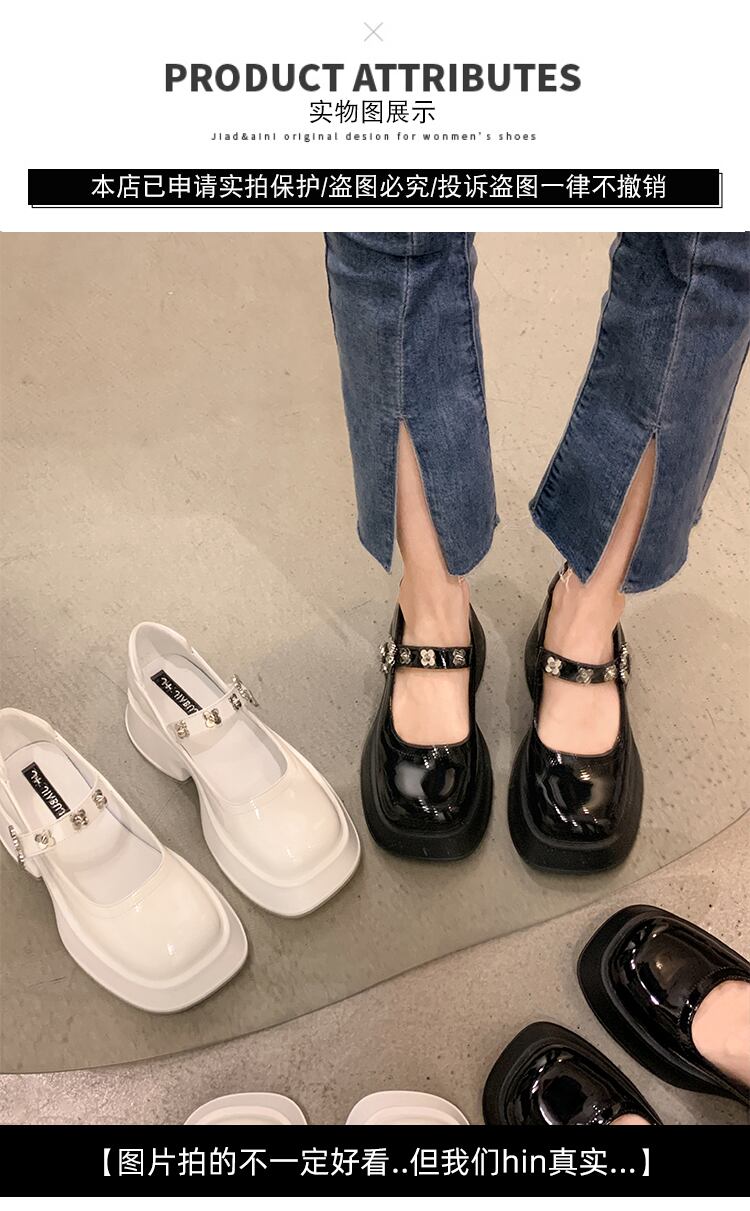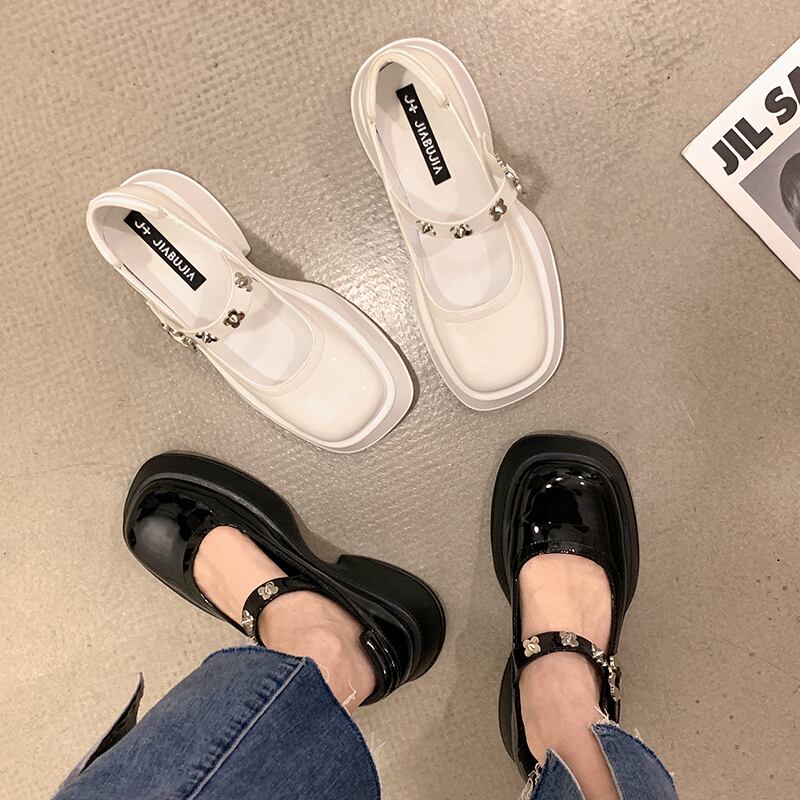 メリージェーンの靴の女性の夏のモデル2022年の新しい正方形の頭のレトロなファッションオールマッチ英国スタイルの厚い底の甘くてクールな小さな革の靴 シューズ 大人ガーリー スウィート キュート カジュアル サマー 夏物 レザー スクウェア jxjxf87364178192