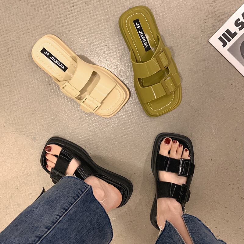 スリッパレディースサマーウェア2022年新作スクエアヘッド厚底ブリティッシュスタイルベルトバックルファッションネットレッドワンワードサンダルサマー ミュール 靴 シューズ 夏物 ハーネス スクウェア jxjxf10363166773