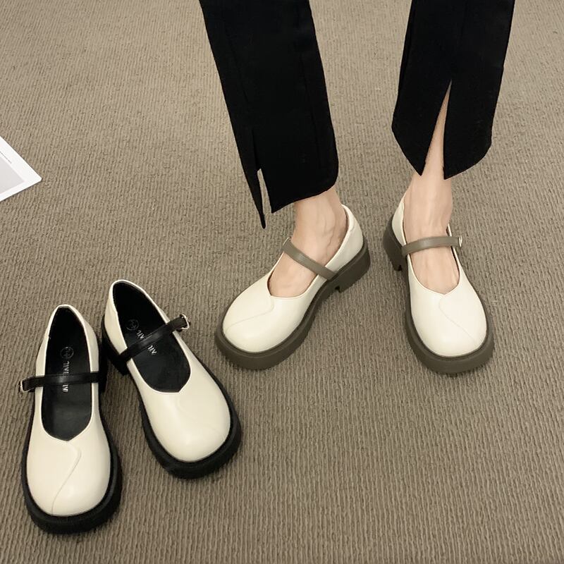 これらのシングルシューズの女性の2022年夏の新しいシンプルなレトロなファッショントレンドワンワードバックルカレッジスタイルの厚底の小さな革の靴 サマー 夏物 レザー jxjxf37489113707