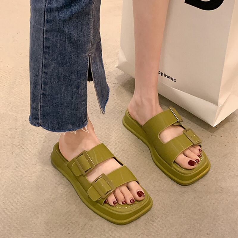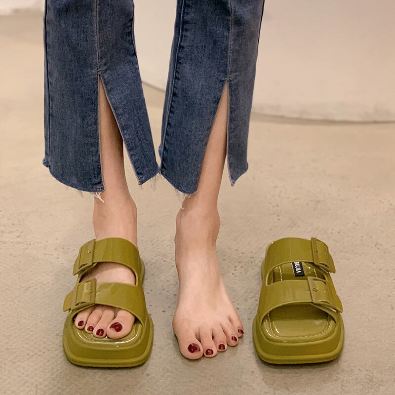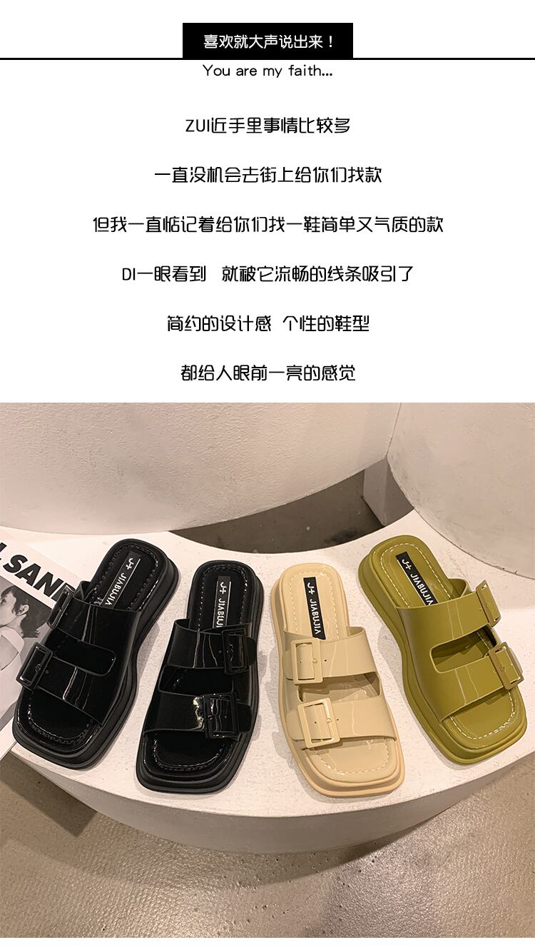 女性用スリッパ2022年夏新トレンドレトロベルトバックル小厚底ビーチワードサンダルとスリッパ夏 ミュール 靴 シューズ サマー 夏物 ハーネス jxjxf50509980390