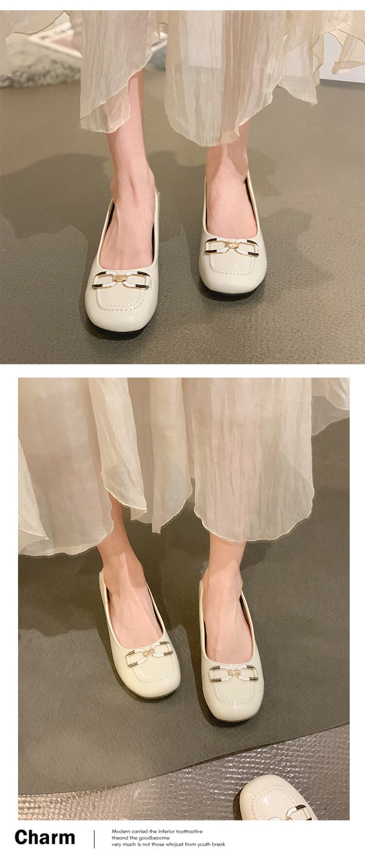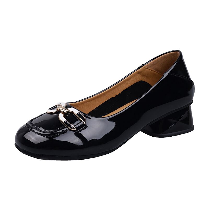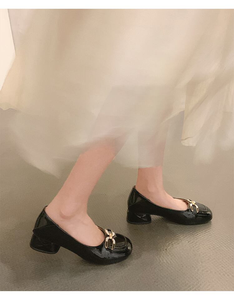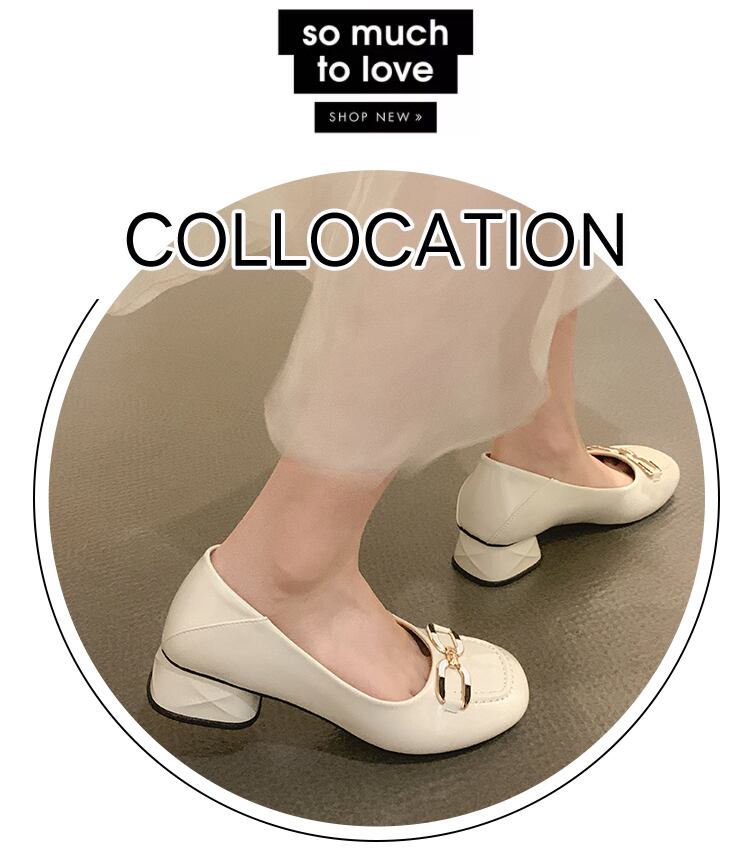フランスのシングルシューズ女性の2022年の新しいスーパーファッションオールマッチレトロメタルラウンドヘッド浅い口厚いヒール滑り止めスクープシューズ 靴 jxjxf26605686747