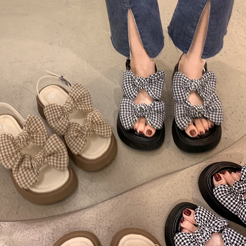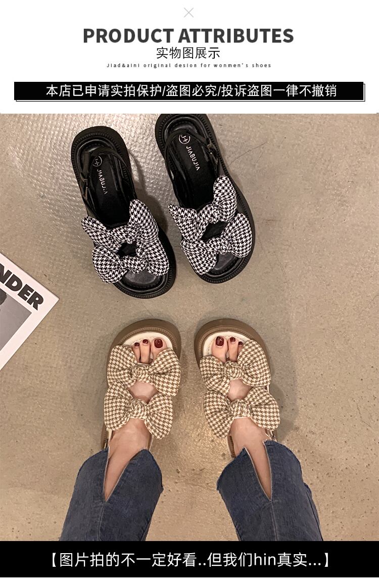 女性のサンダル2022年夏新しいファッションオールマッチかわいい弓スポンジケーキ厚い底滑り止めビーチシューズ潮 靴 リボン 大人ガーリー スウィート キュート カジュアル サマー 夏物 jxjxf41200859078
