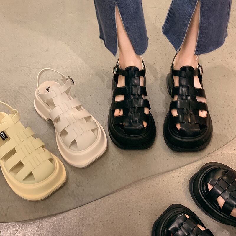 ローマのサンダル女性の2022年夏の新しいファッションレトロ織りの小さな厚いヒール滑り止めビーチシューズinstide 靴 サマー 夏物 jxjxf96518605098