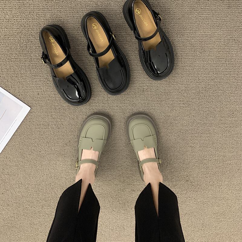 英国スタイルの小さな革の靴の女性の2022年夏の新しいシンプルなレトロなファッショントレンドオールマッチの厚い底の滑り止めローファー シューズ サマー 夏物 レザー jxjxf9689136690