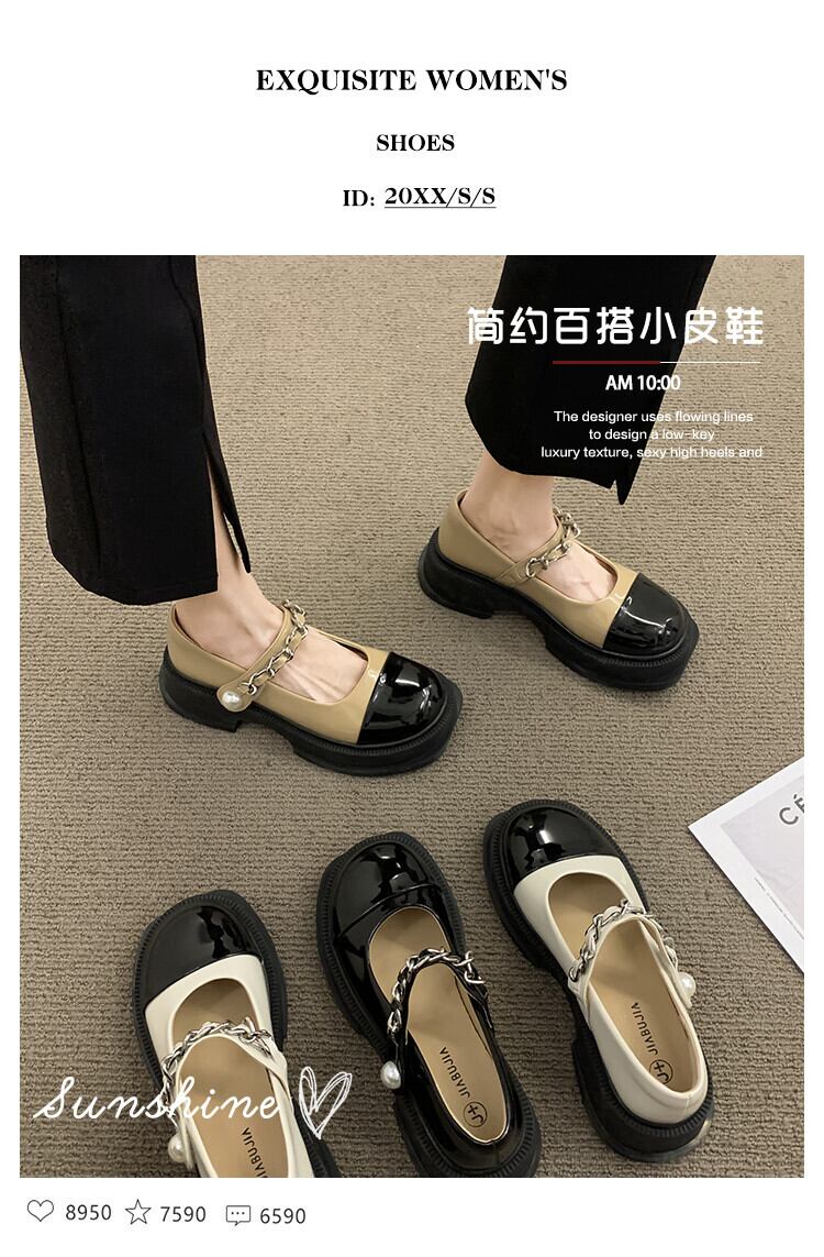 サマースタンダードパールチェーン レザー 靴 シューズ レトロ 夏物 真珠 jxjxf50184056721