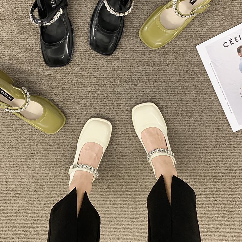 シングルサマーラインストーンレザー 靴 シューズ 夏物 スクウェア jxjxf5803228880